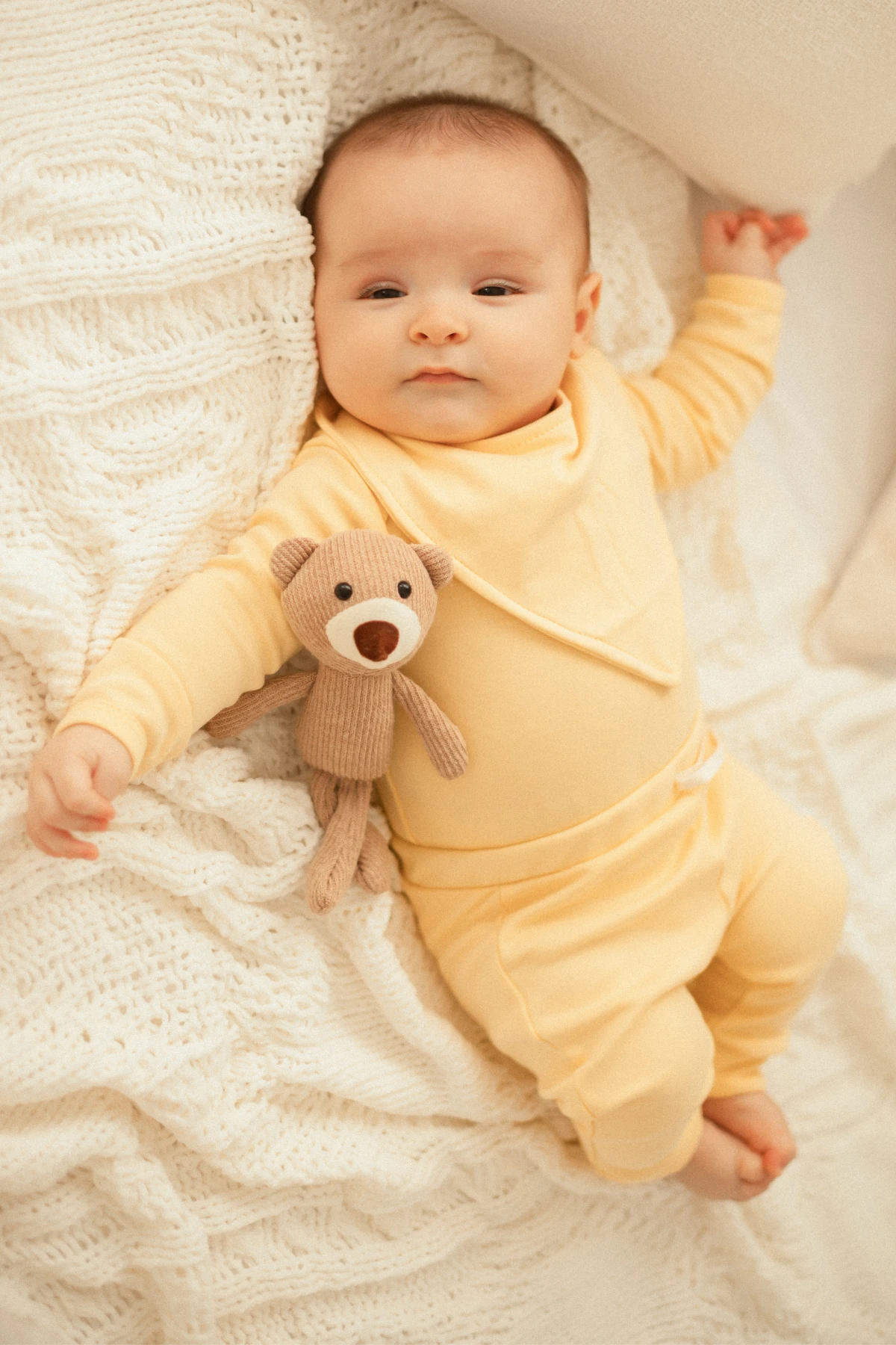 Calça com elástico e cordão na cintura para melhor ajuste e conforto para o bebê. Feita em tecido suedine 100% algodão egípcio sustentável, com toque macio, alta durabilidade e super flexível.