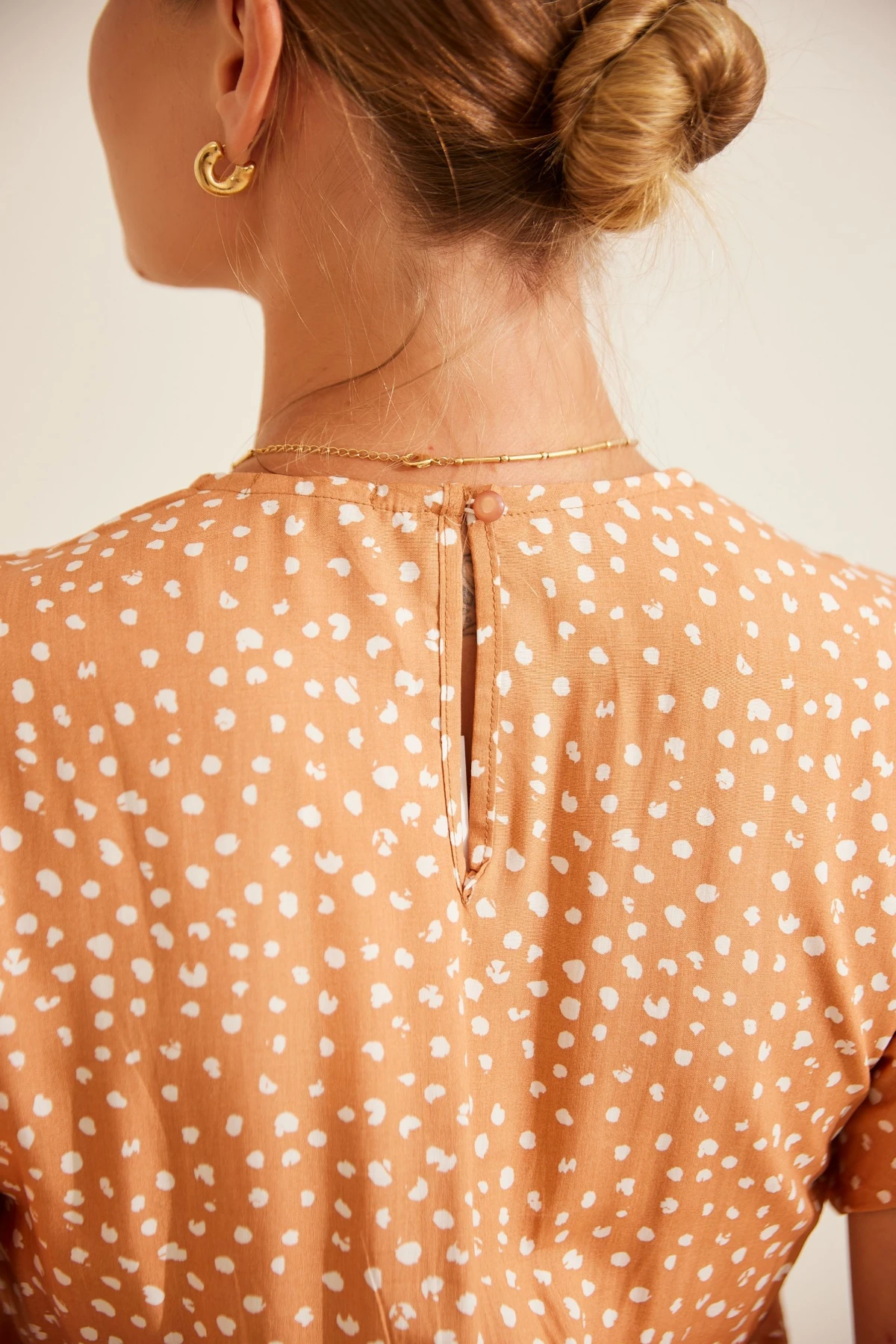 Facilidade para vestir: botão no decote das costas que ajuda na hora de entrar e sair da peça.
