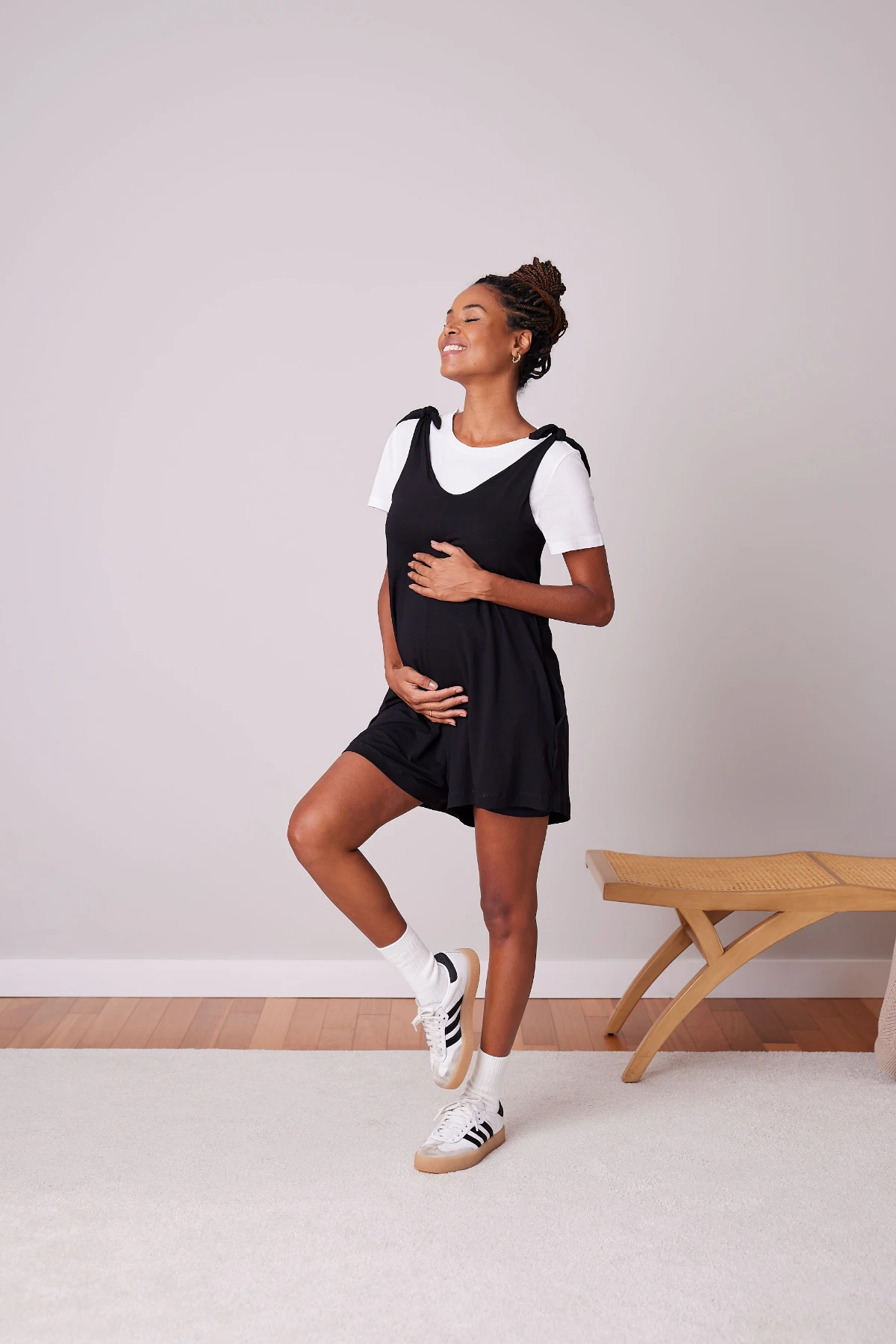 Modelo soltinho, curto, não marca o corpo e é confortável e fresquinho. Com modelagem ampla, acompanha o crescimento da barriga. Possui alça ajustável com amarração nos ombros, que deixa o momento de amamentar mais prático. É um básico que funciona bem em todas as fases e estilos.