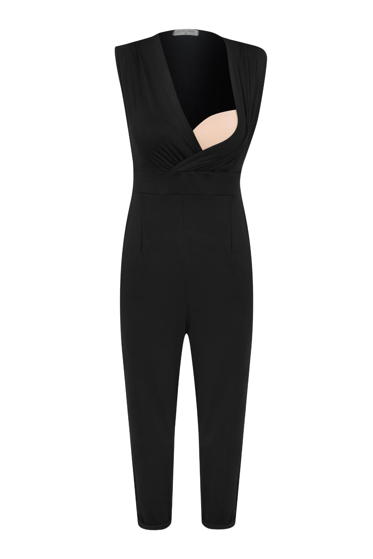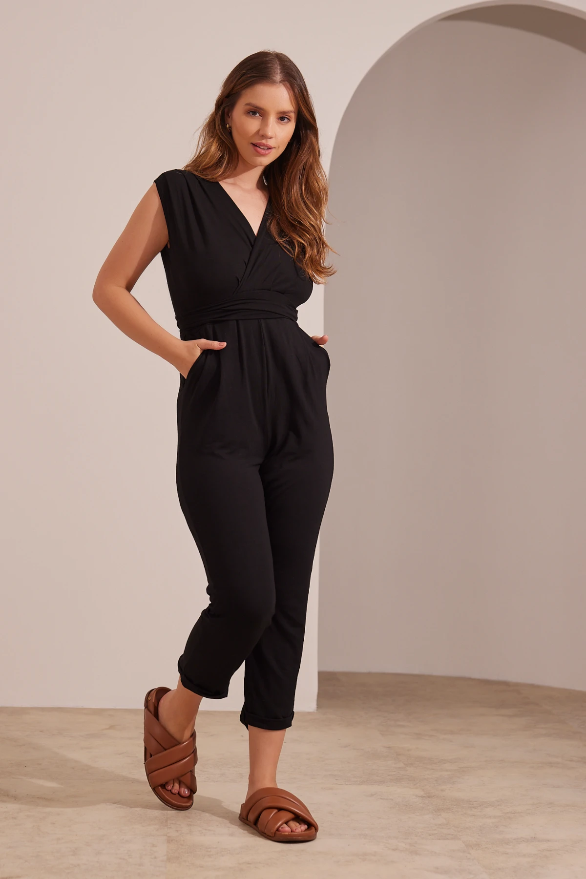 Assim, o Macacão Regata com Transpasse foi pensado para resolver isso: tecido de toque macio, decote transpassado para amamentação prática, calça cigarrete e bolsos funcionais.