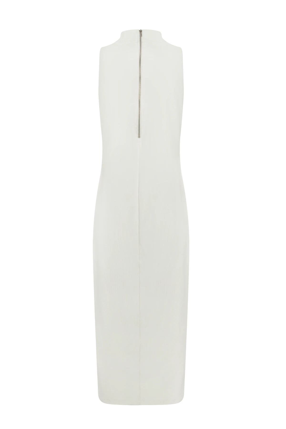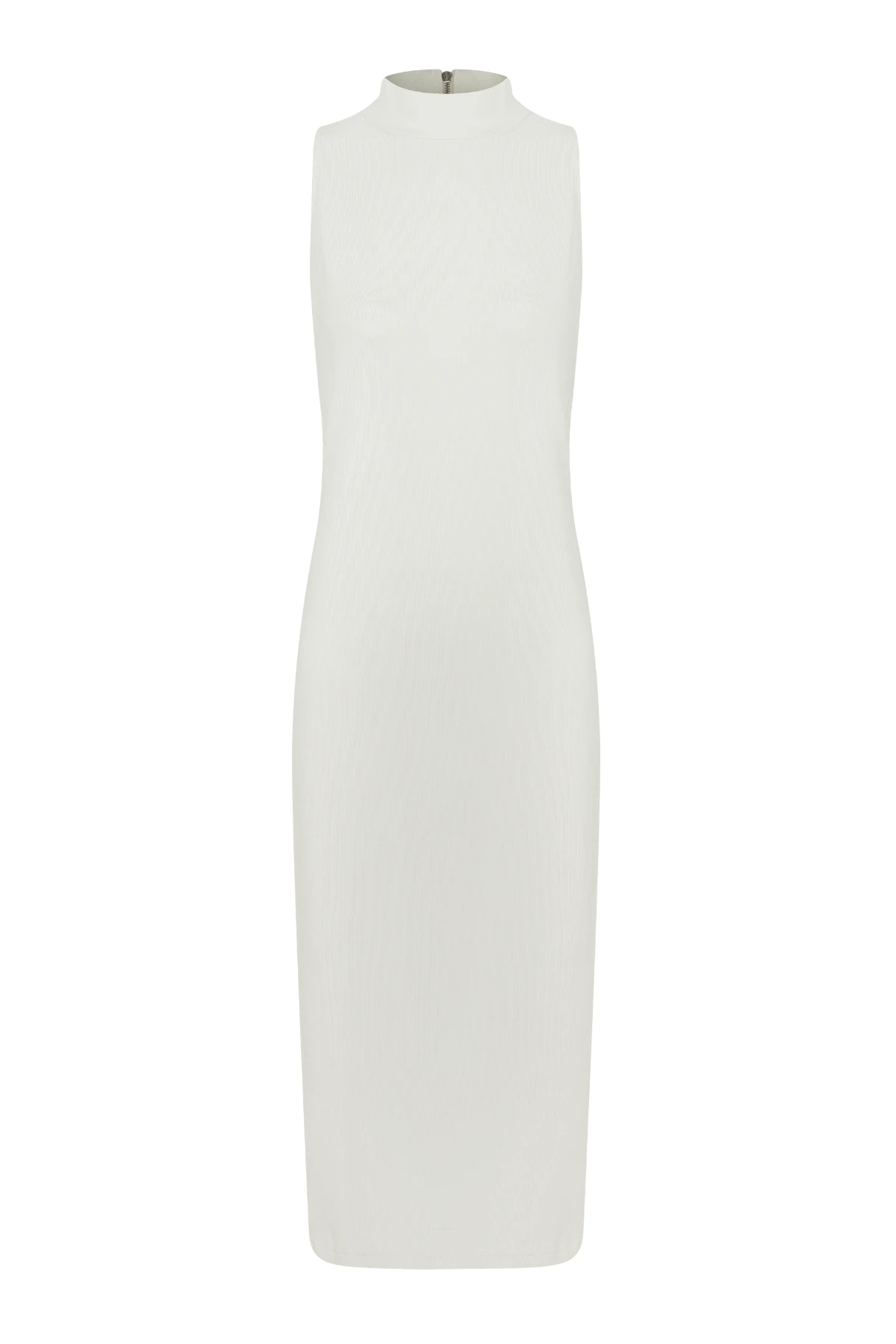 Por isso desenvolvemos este vestido: a viscolycra de alta elasticidade estica onde o corpo pede e recupera a forma, acomodando a barriga sem alargar. O zíper nas costas facilita o vestir; a gola alta e o comprimento midi entregam um visual minimalista e elegante, enquanto o corte justinho valoriza a silhueta gestante com conforto.