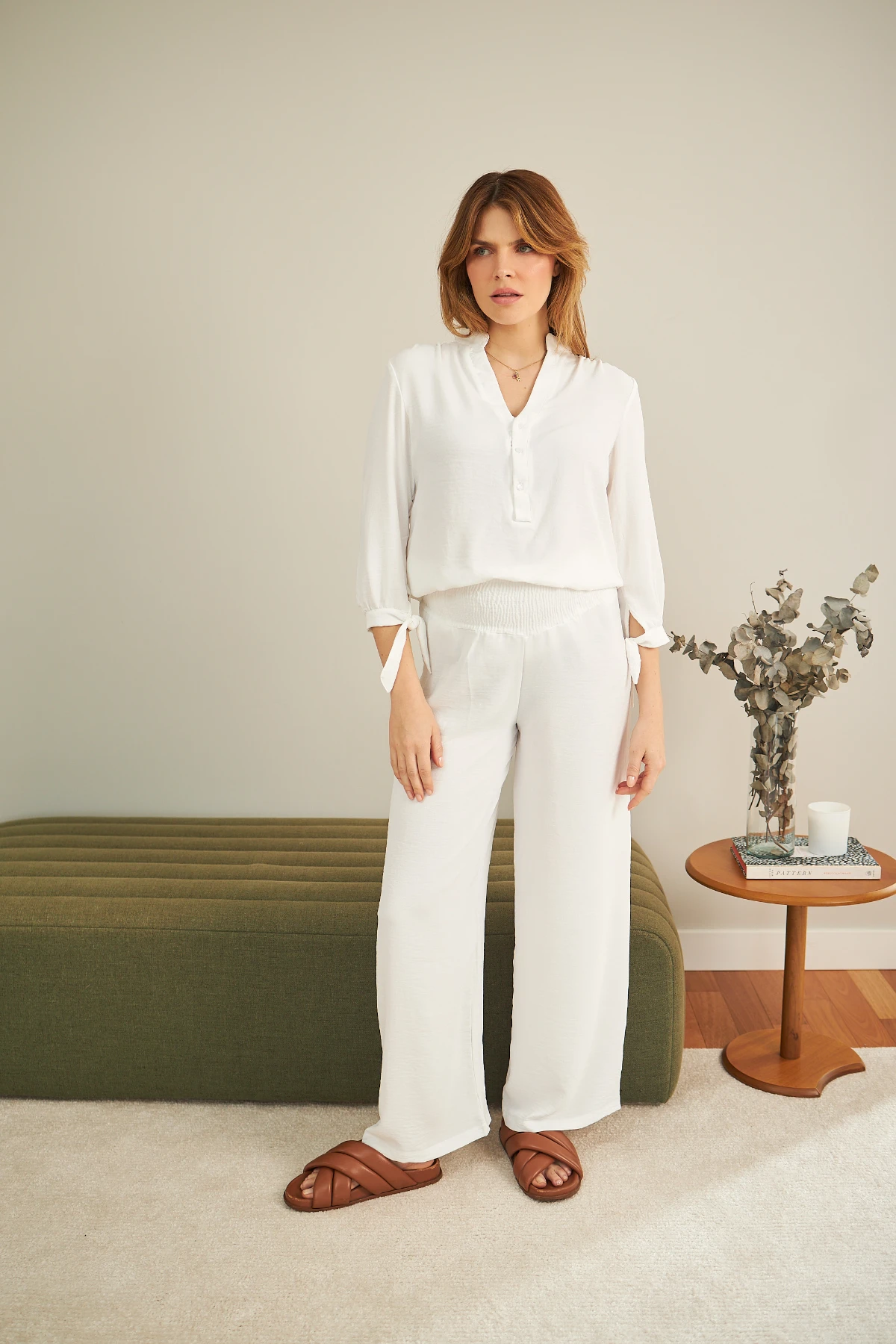 Blusa com modelagem ampla e fendas laterais, mangas ¾ e botões que permitem amamentar com facilidade. Combine com nossa Calça Gestante e Pós-Parto Soltinha com Lástex e crie um conjunto monocromático perfeito para usar em diferentes ocasiões do dia a dia.