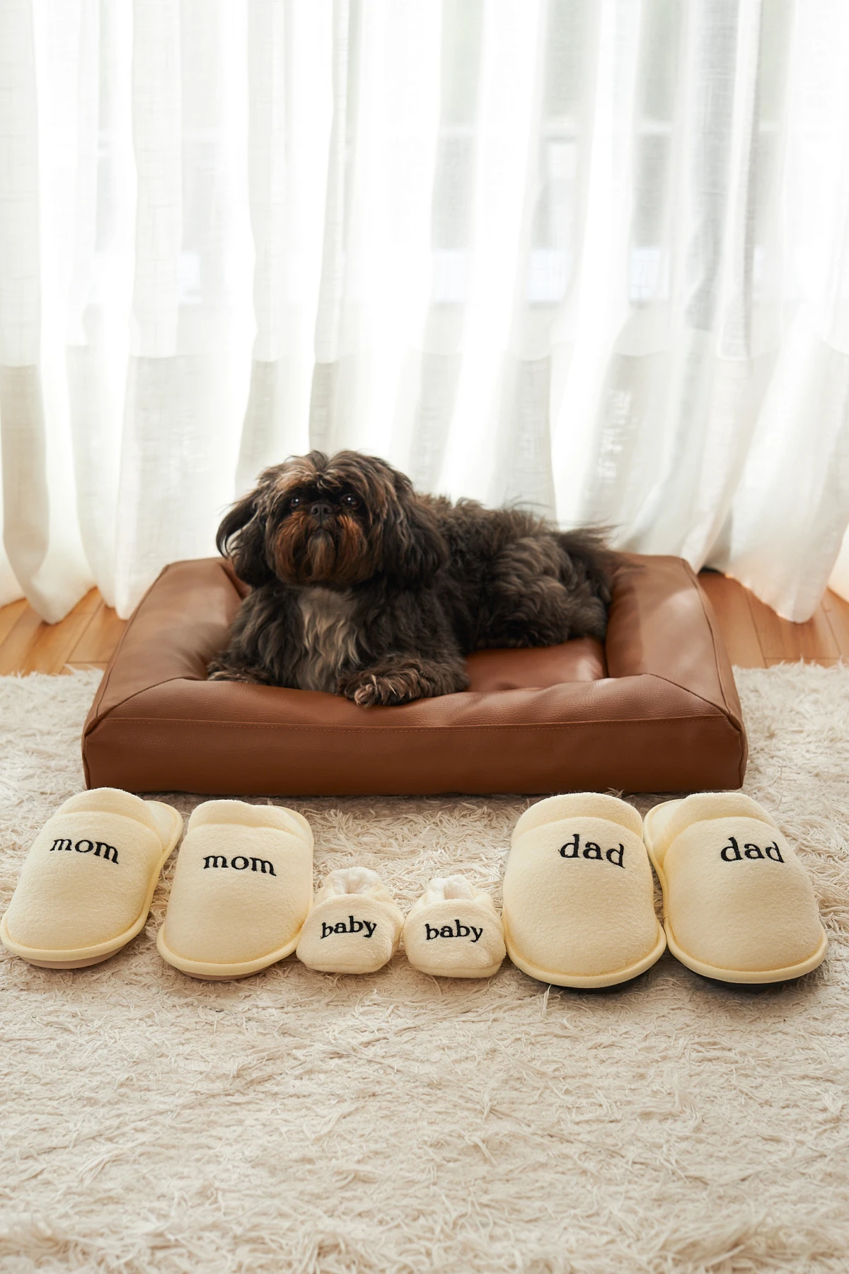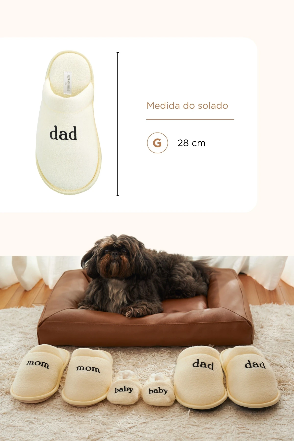 Com design fechado e o bordado delicado “Dad”, é perfeita para relaxar com estilo, acompanhar as rotinas em família e até compor fotos com a coleção de pantufas bordadas.