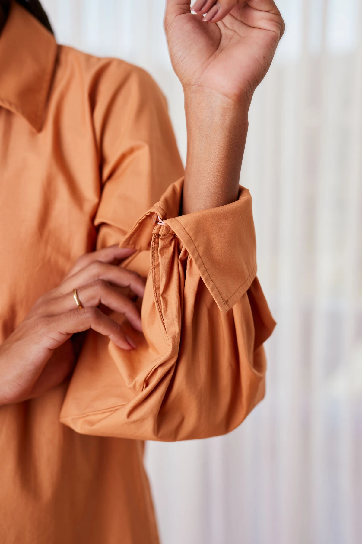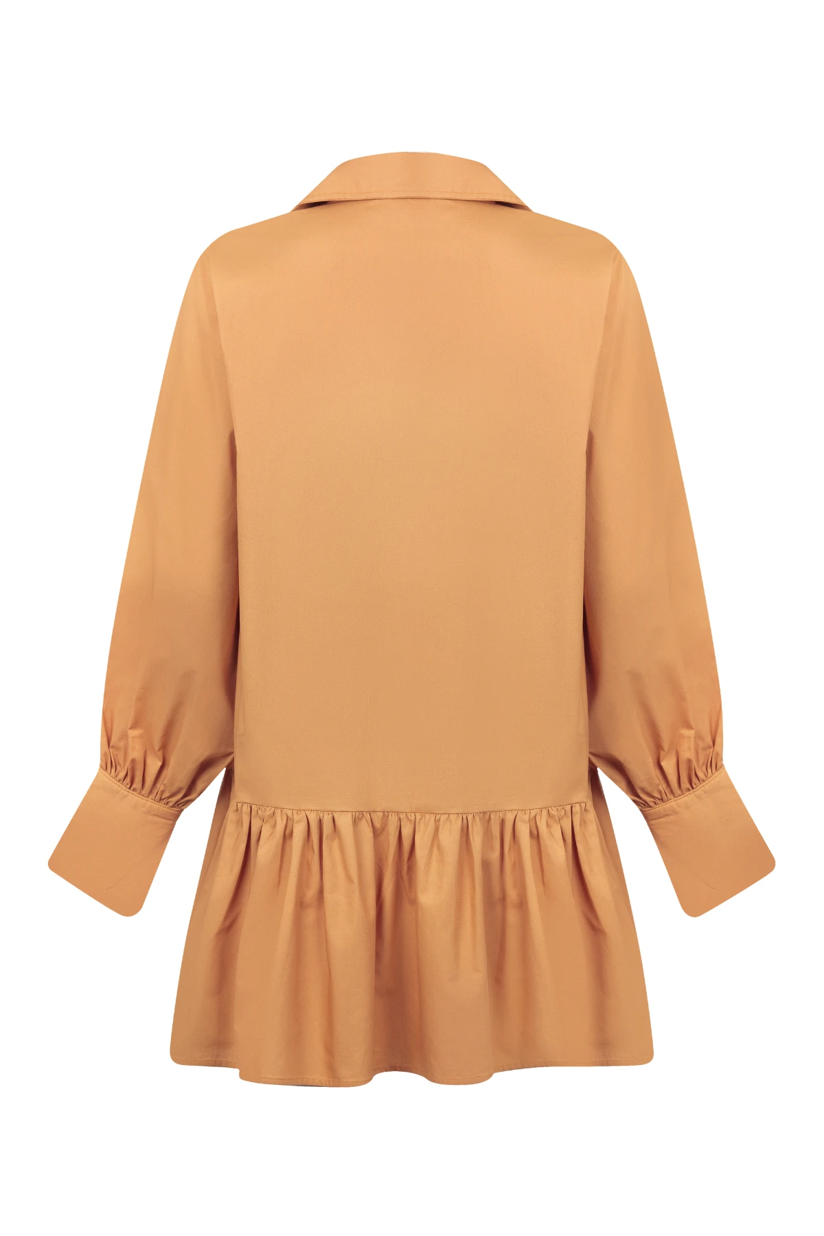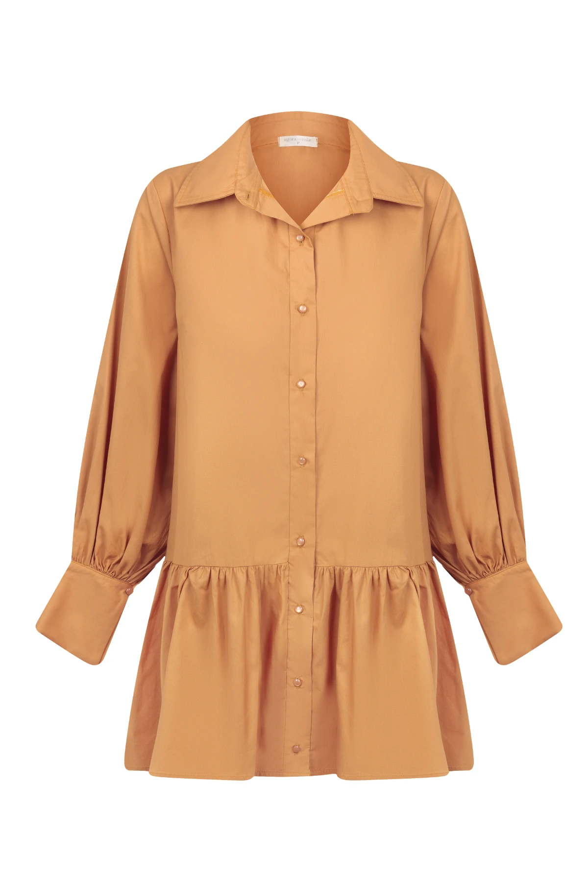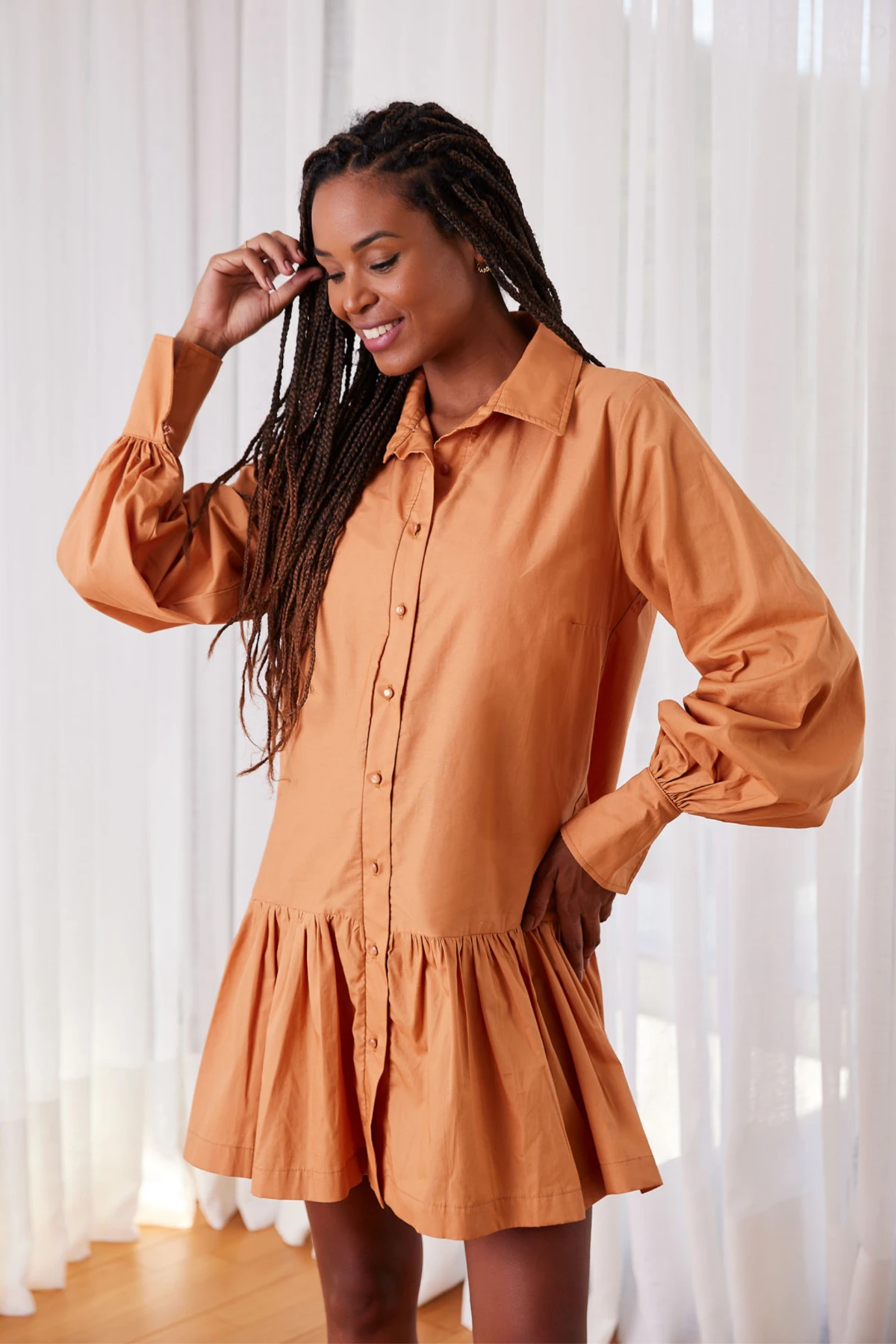 Vestido chemise de comprimento curto. Apresenta um charmoso babado na barra, mangas longas bufantes e um elegante colarinho gola polo. Detalhes como esses elevam o visual, tornando-o ideal para uma variedade de combinações, seja com salto alto ou tênis. Sua abertura frontal com delicados botões proporciona praticidade durante o momento da amamentação. Confeccionado com tecido 100% algodão, o que garante conforto e durabilidade. Sua modelagem ampla acompanha o crescimento da barriga, tornando-o uma escolha excelente para todas as etapas da maternidade e para diversas ocasiões.