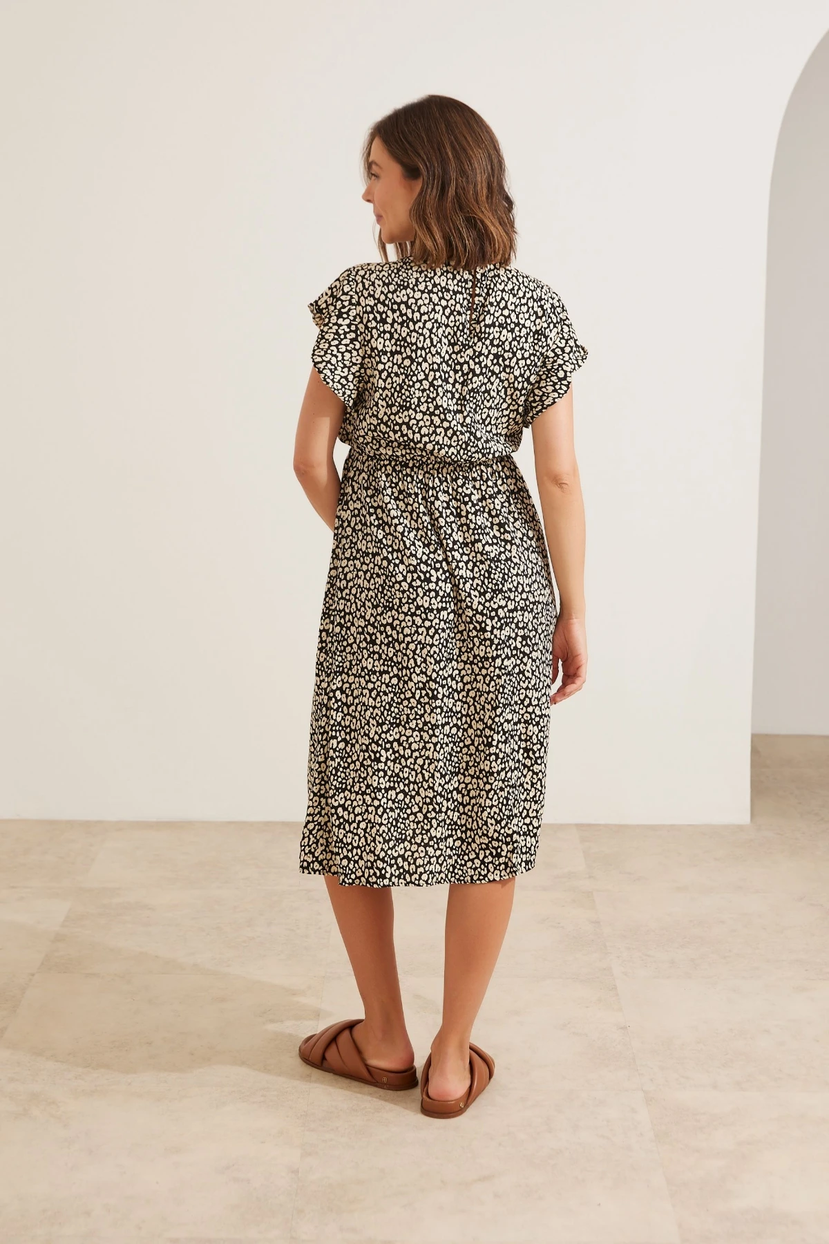 Vestido em tecido plano de viscose com uma delicada estampa. Possui toque macio e confortável e modelagem soltinha que acompanha o crescimento da barriga durante a gestação. A sobreposição no busto possui recorte especialmente desenvolvido para facilitar a amamentação, oferecendo praticidade e estilo para as mamães. Além disso, a presença de elástico abaixo do busto garante uma segurança adicional nesse momento. A manga é curta e bem soltinha. O vestido possui comprimento midi e decote nas costas com um botão para fechamento. É uma escolha elegante e versátil para diversas ocasiões e fases da maternidade!