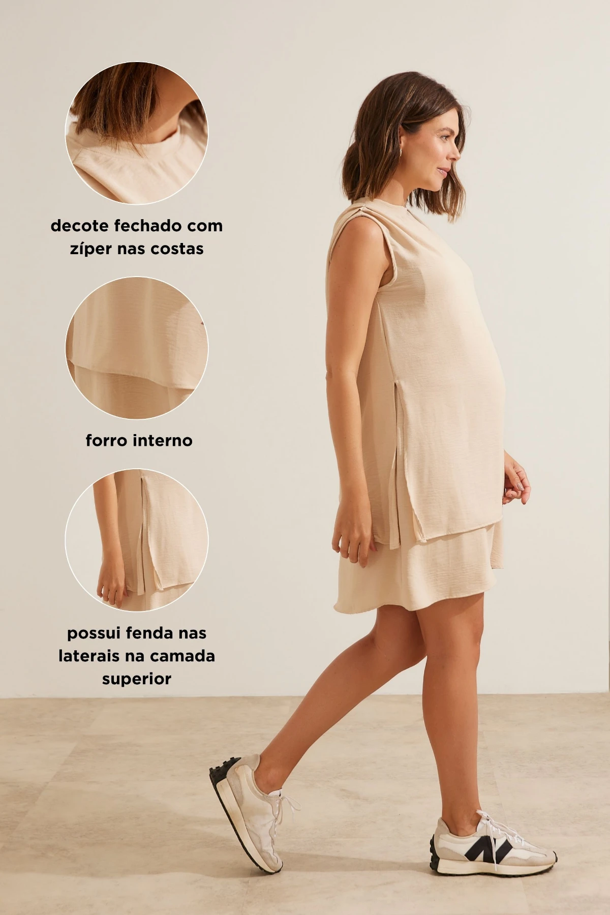 - Estrutura soltinha para acomodar o crescimento da barriga