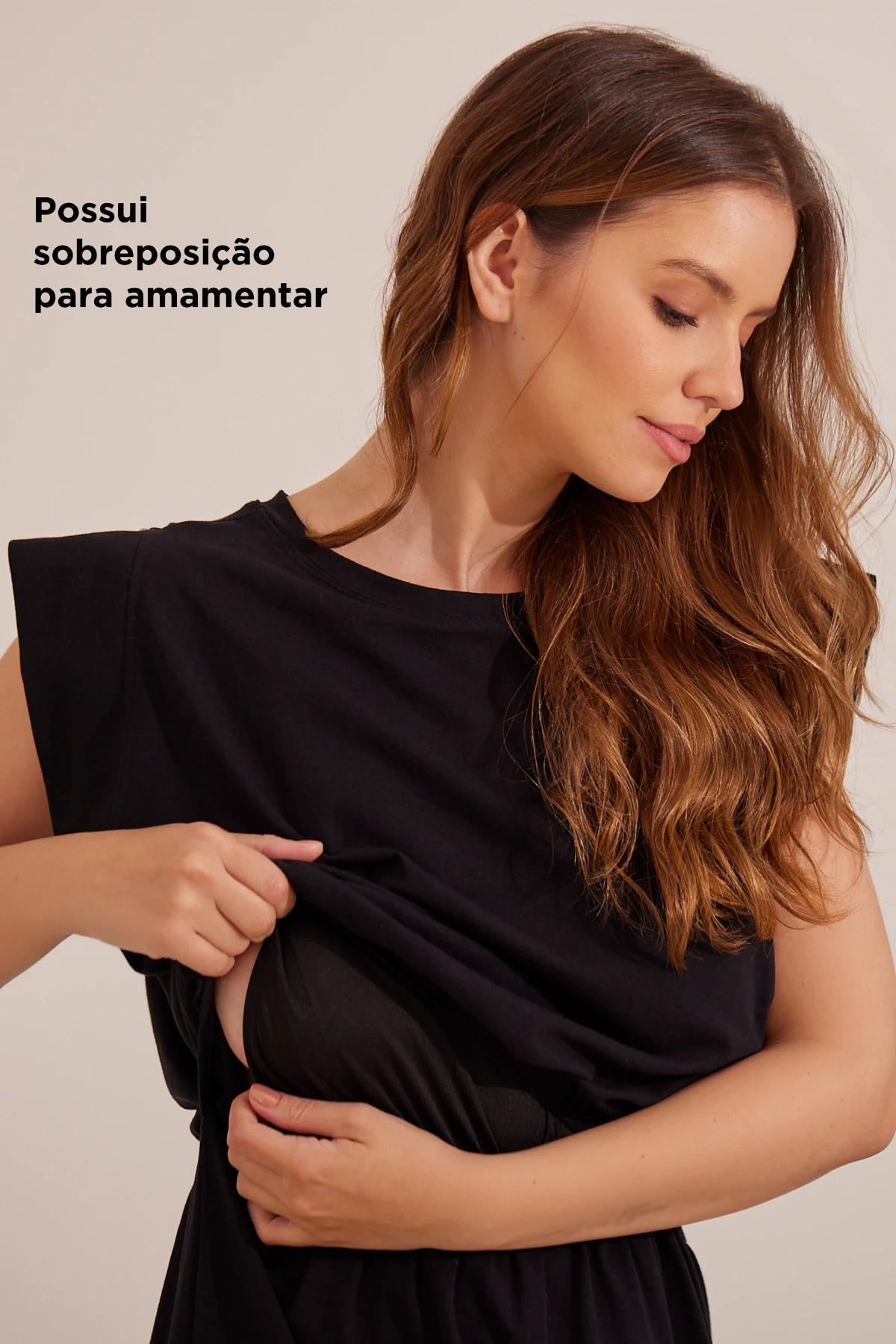 Amamentação discreta: sobreposição com elástico na cintura que facilita o acesso ao seio com privacidade.