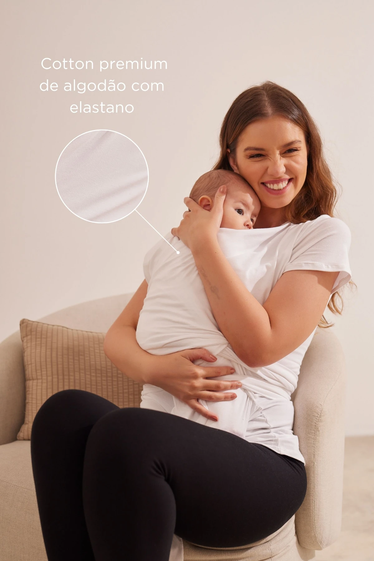Blusa pele a pele em malha de algodão com toque macio. Foi desenvolvida para fortalecer o vínculo entre o bebê e a mãe e traz muitos benefícios.