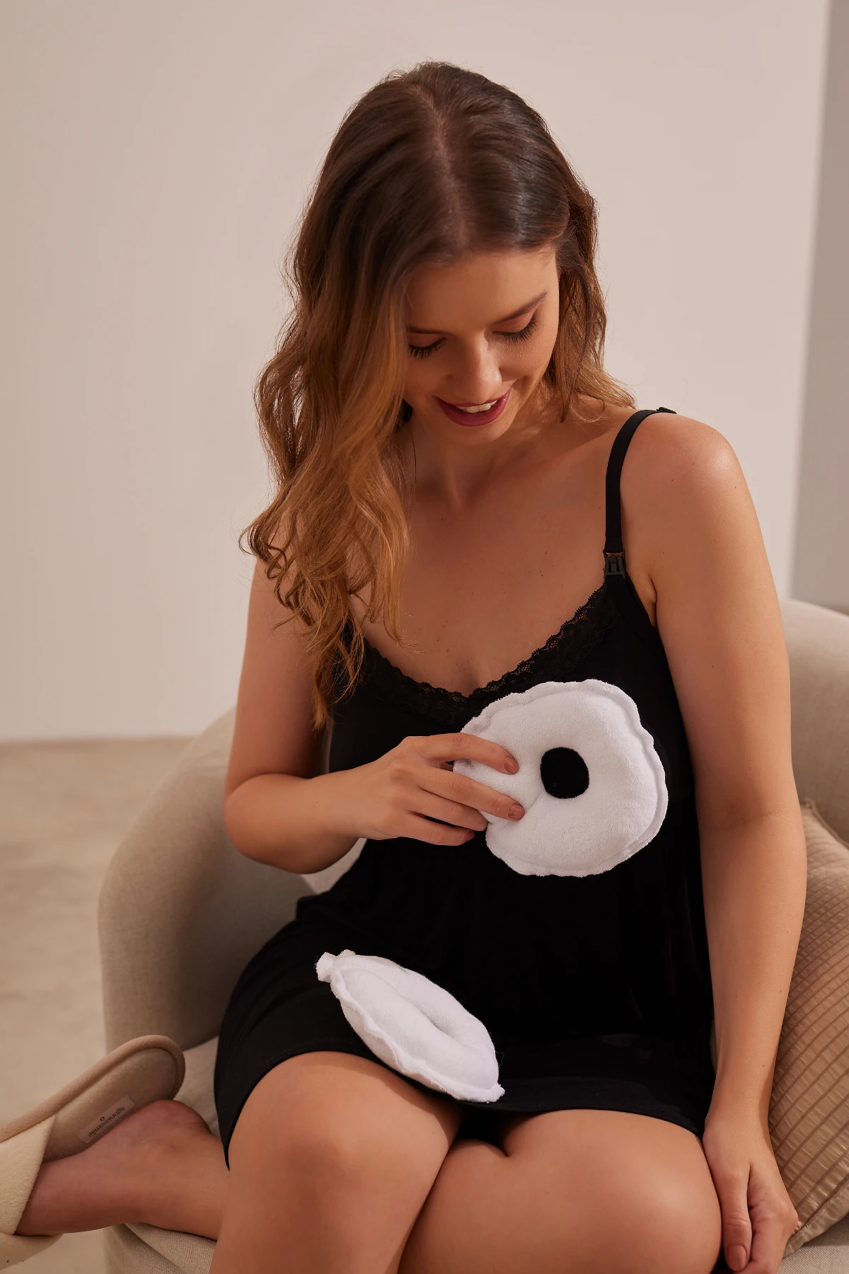 Pensando nesse momento delicado, criamos a Rosquinha Atoalhada Protetora de Seios, feita em malha atoalhada de algodão, com toque suave e respirável que protege sem abafar. O formato anatômico com abertura central evita o contato direto do mamilo com o tecido, permitindo que ele respire e cicatrize naturalmente.