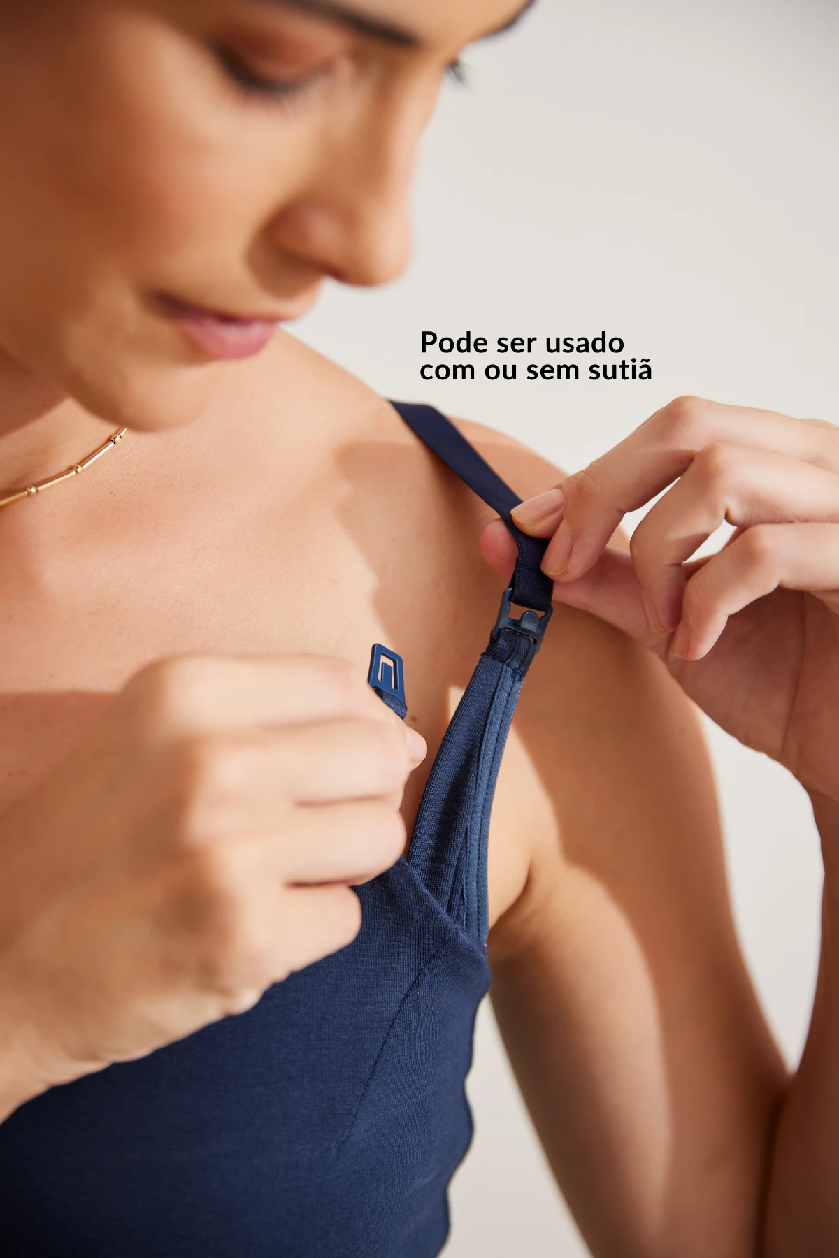 Fecho click nas alças: praticidade para amamentar com uma mão.