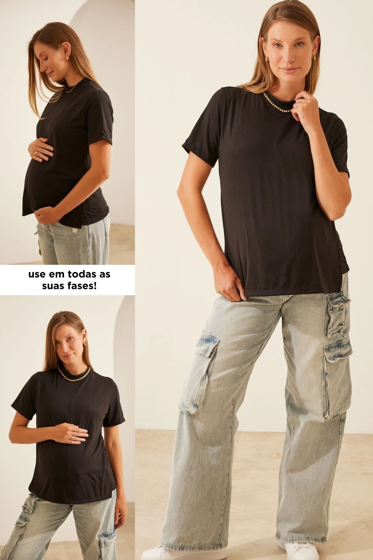 Camiseta básica soltinha que não parece de amamentar. O tecido é super macio, com toque de nuvem. Possui a frente dupla com a parte de baixo com abertura para amamentação. Tem o comprimento ideal para acompanhar o crescimento da barriga. Use em todas as fases da maternidade.