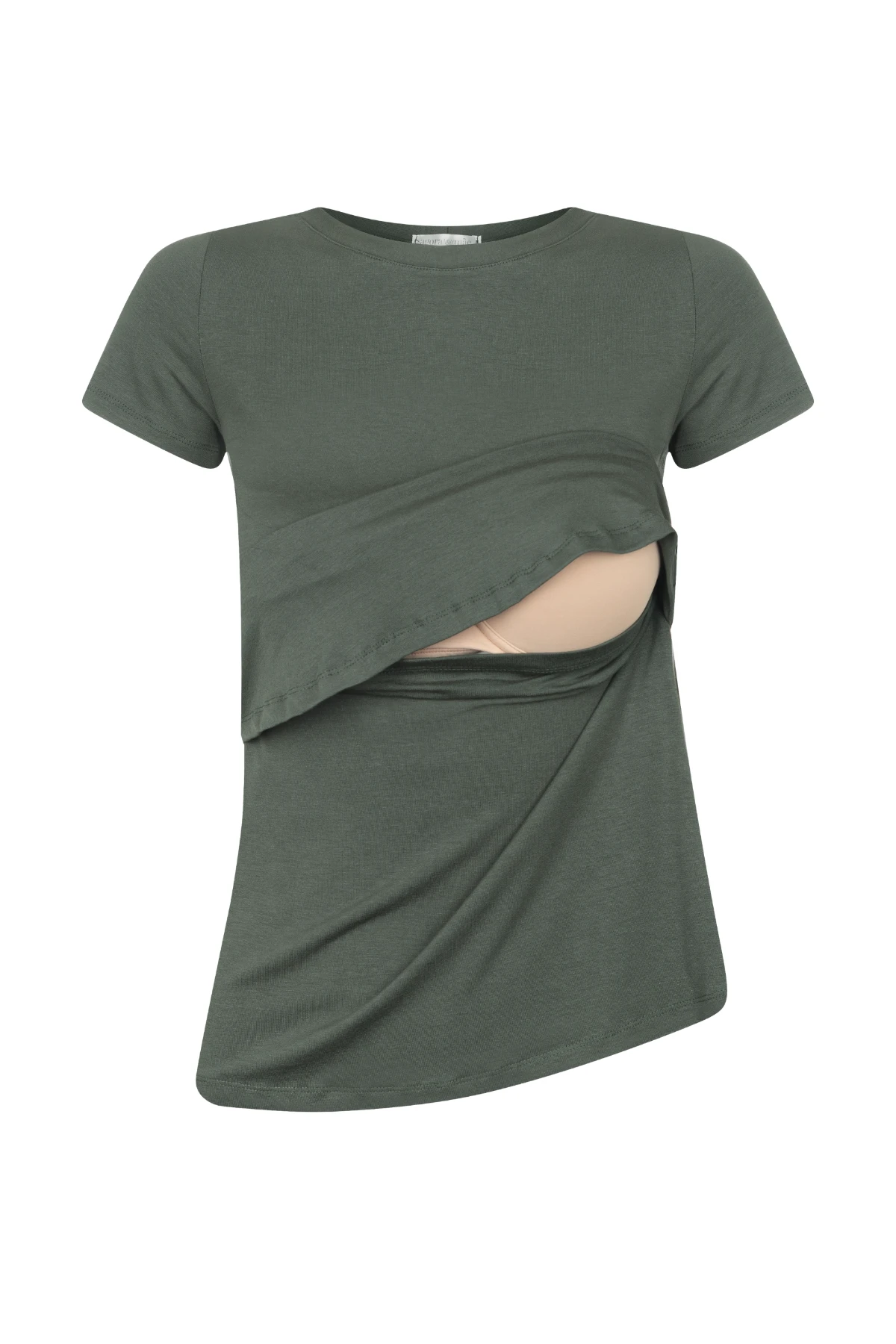 A sobreposição no busto esconde uma abertura em “U”, que facilita a amamentação com discrição.