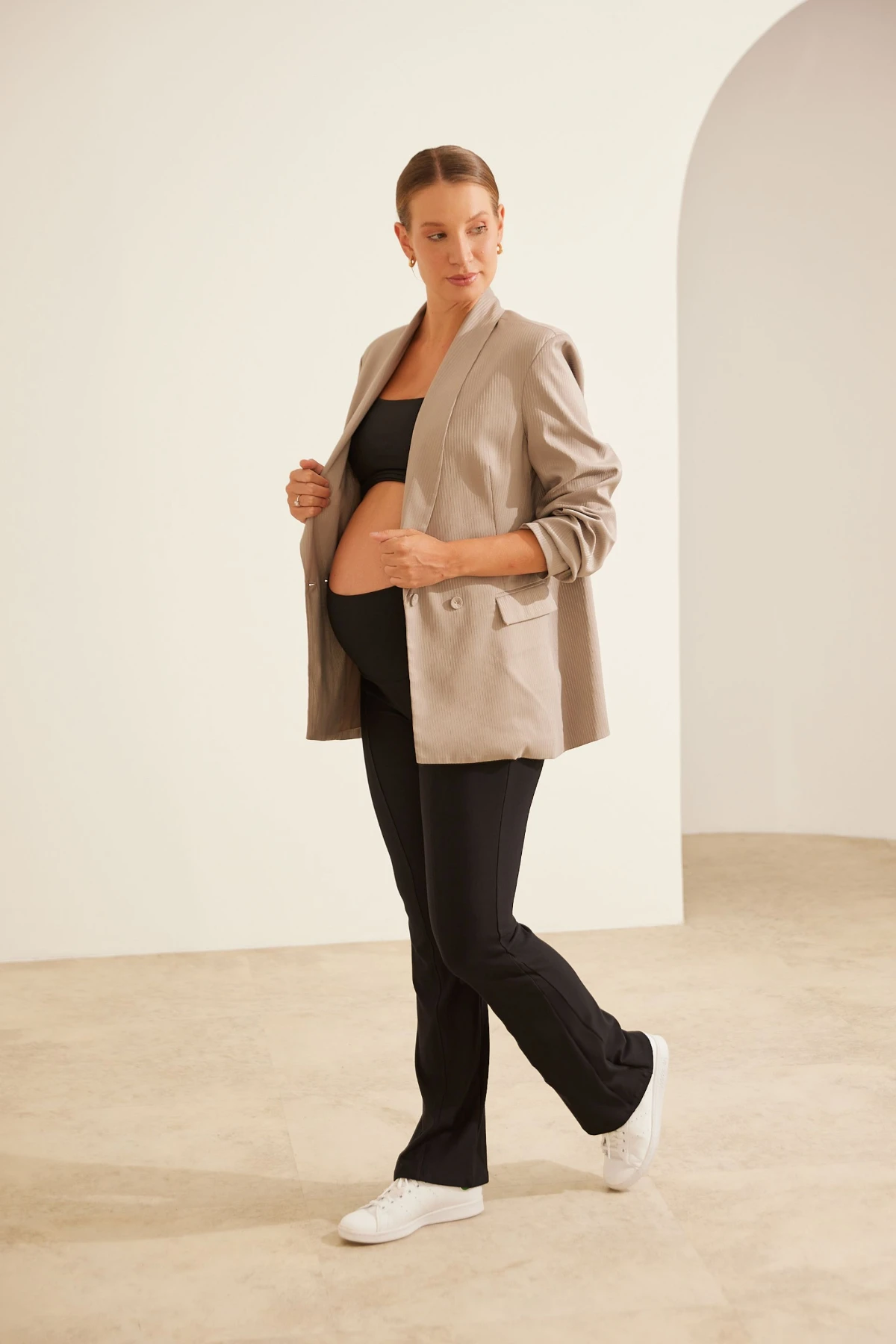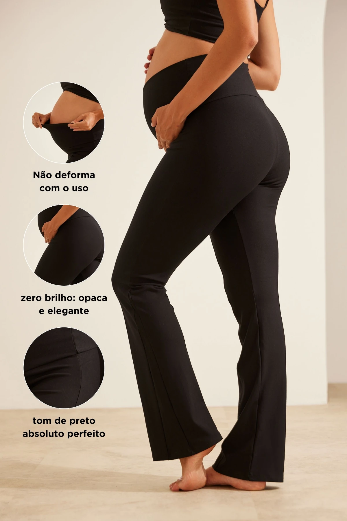 A abertura bootcut é uma opção curinga para a maternidade. Use na rotina diária, no trabalho, em passeios e também para ocasiões que pedem um visual mais arrumado, sem abrir mão do conforto.
