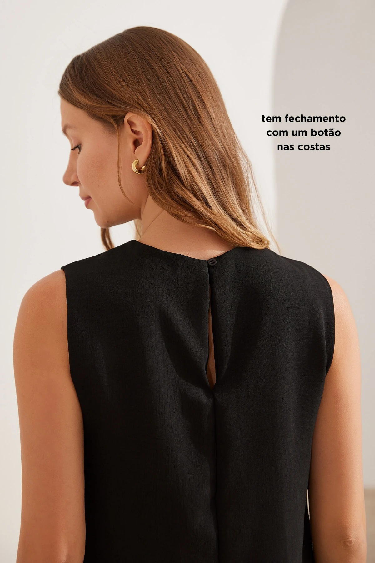 Fechamento com botão nas costas: detalhe delicado e charmoso.