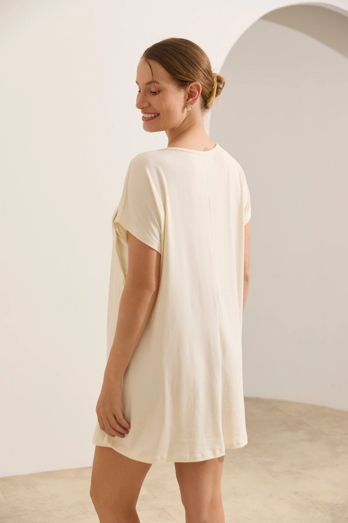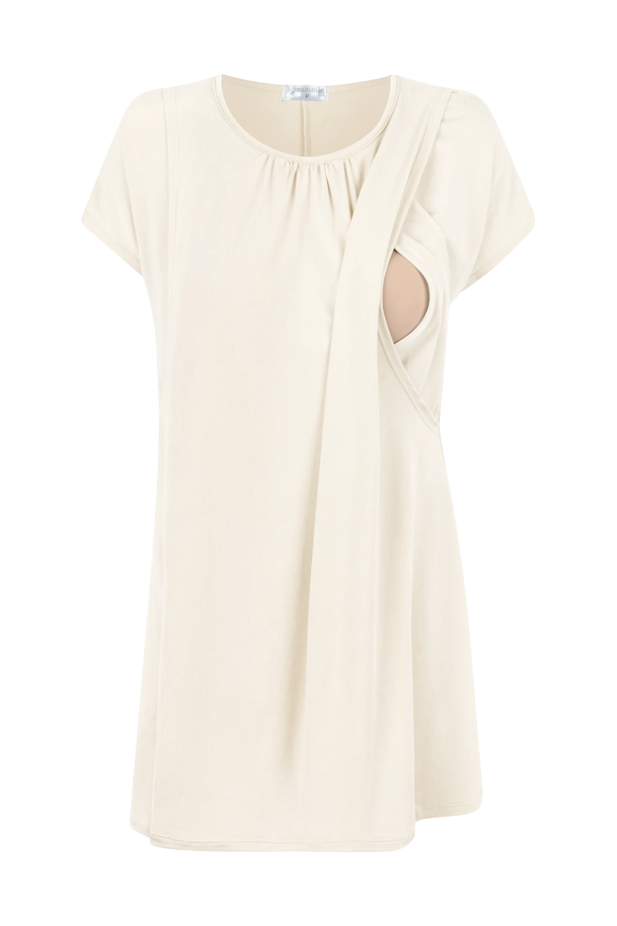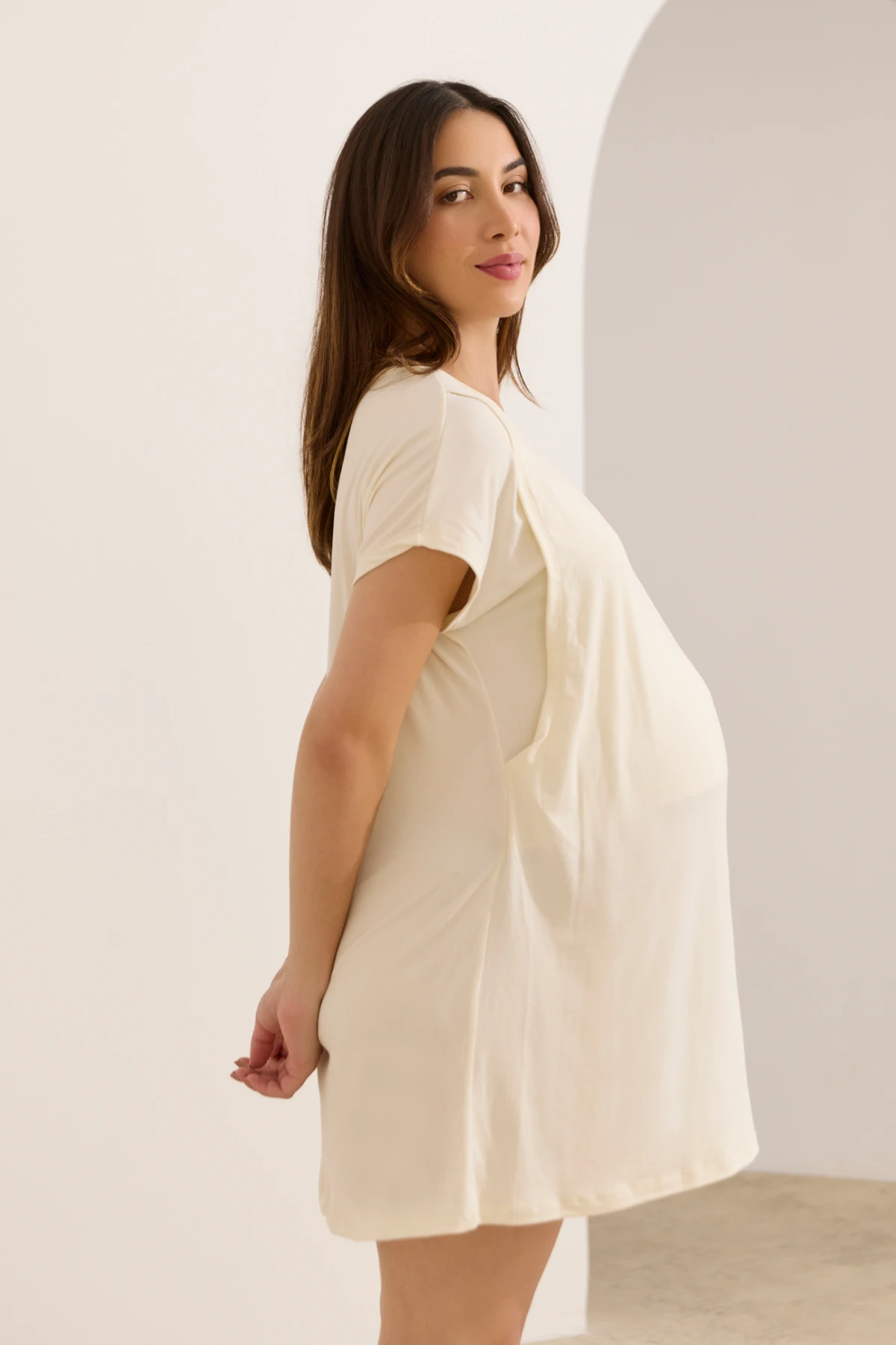 Camisola manga curta de malha de toque macio, modelagem curta, garante conforto e liberdade de movimentos durante a gestação. Possui recorte interno estratégico para amamentação prática e discreta.