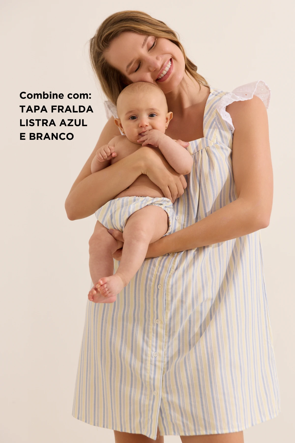 Decote quadrado, cavas mais abertas e botões frontais que garantem mobilidade e acesso rápido para amamentação. As mangas em laise e listras verticais adicionam efeito alongador da silhueta. Ideal para uso “Casa & Rua”.
