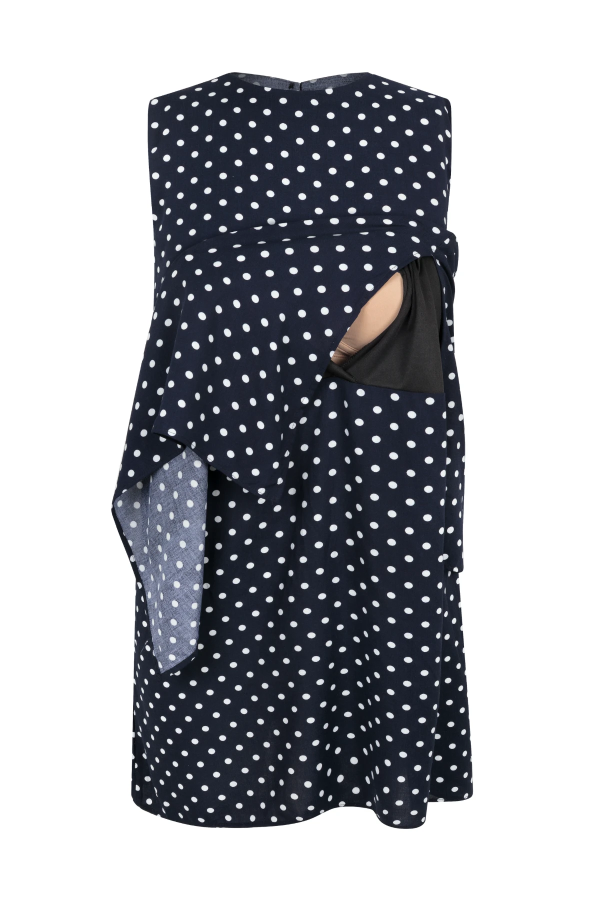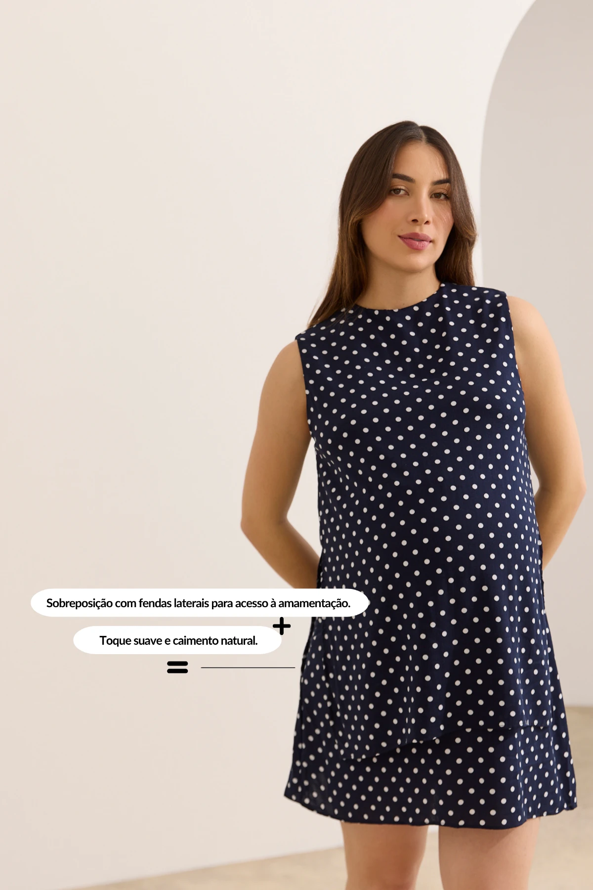 Sobreposição com fendas laterais para acesso prático à amamentação. Recorte interno com abertura funcional garante segurança e discrição.