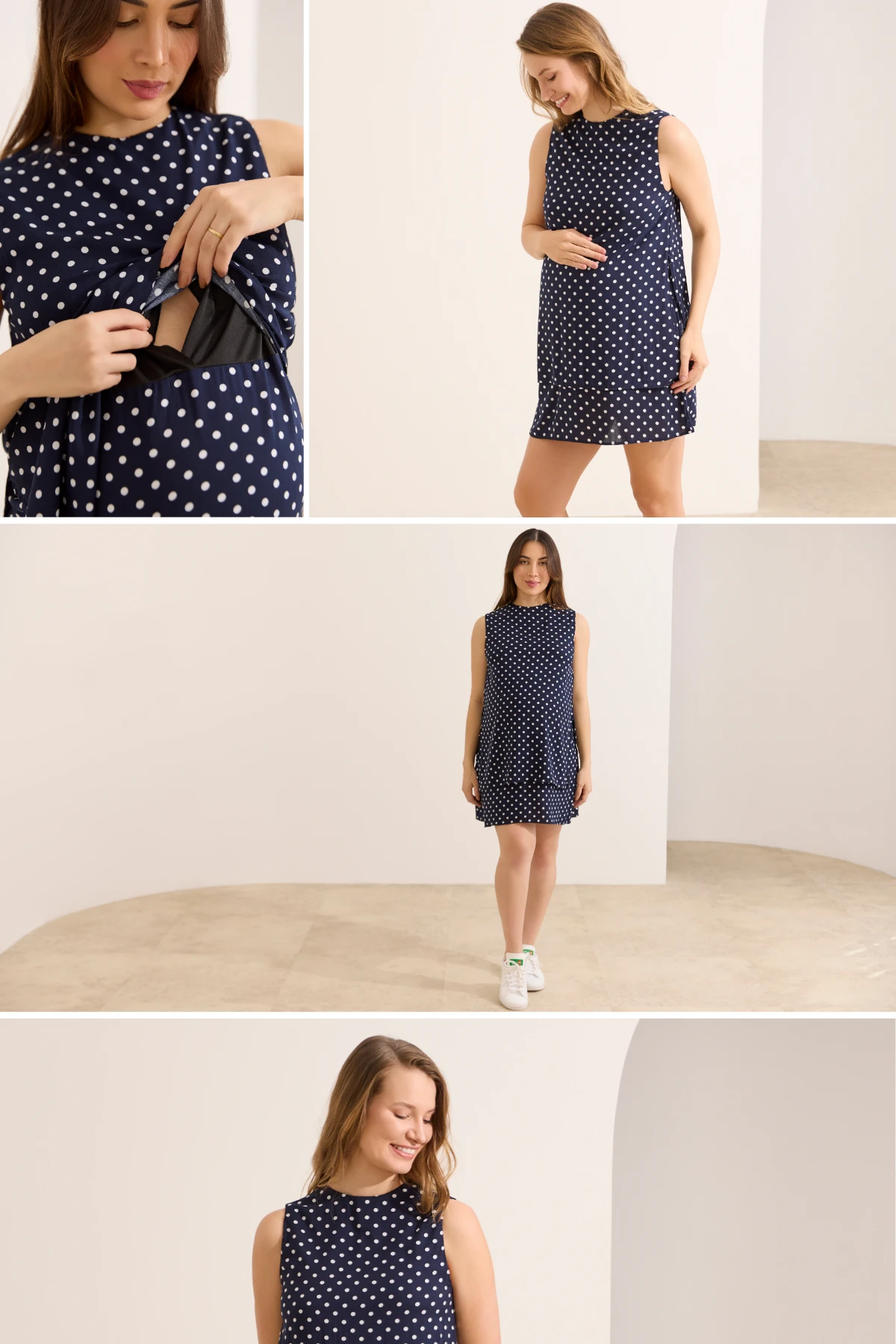 A modelagem regata é pensada para acomodar o corpo durante toda a gestação. O corte curto e o caimento fluido promovem liberdade de movimentos, sem perder a elegância para composições do dia a dia.