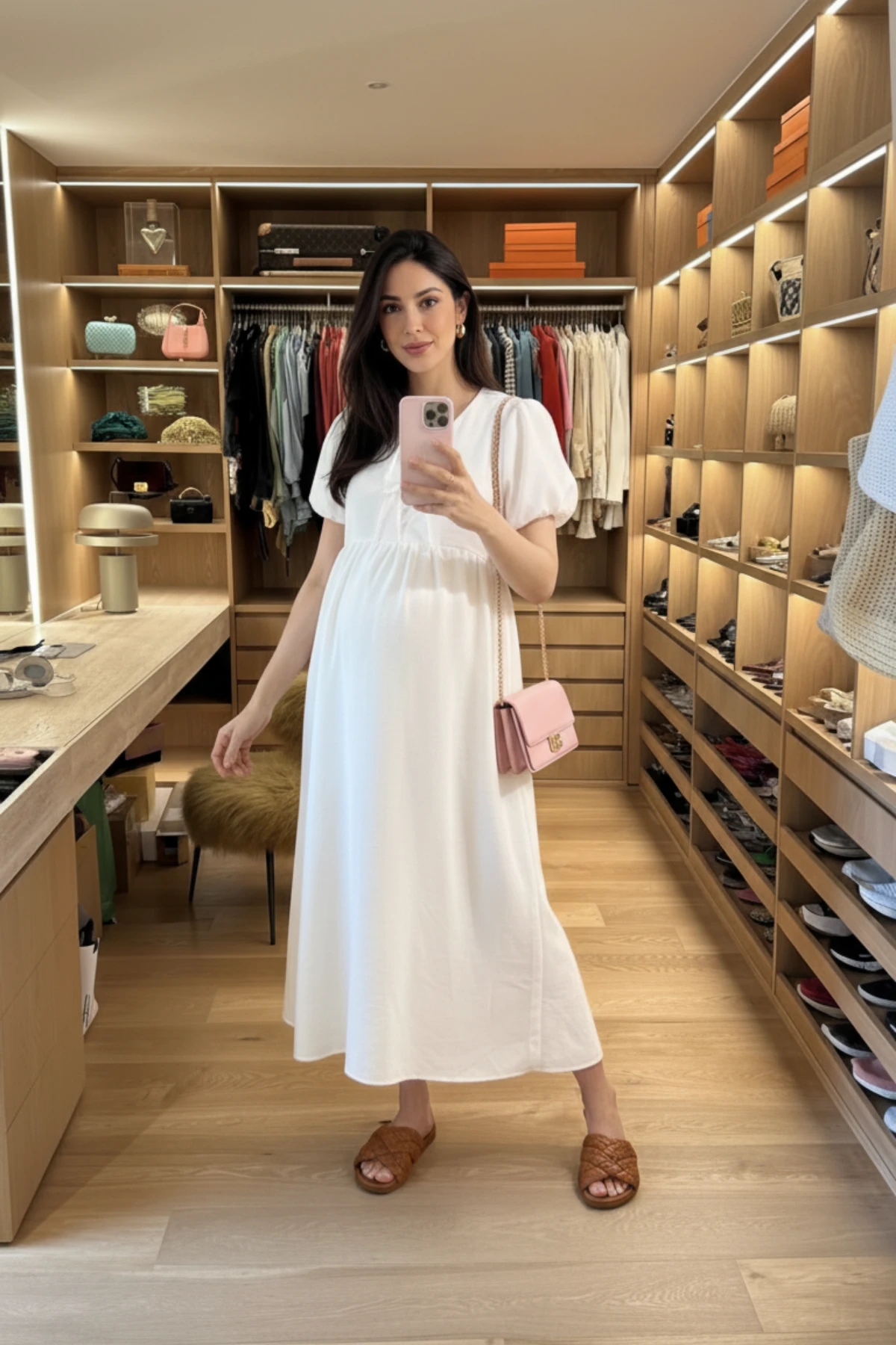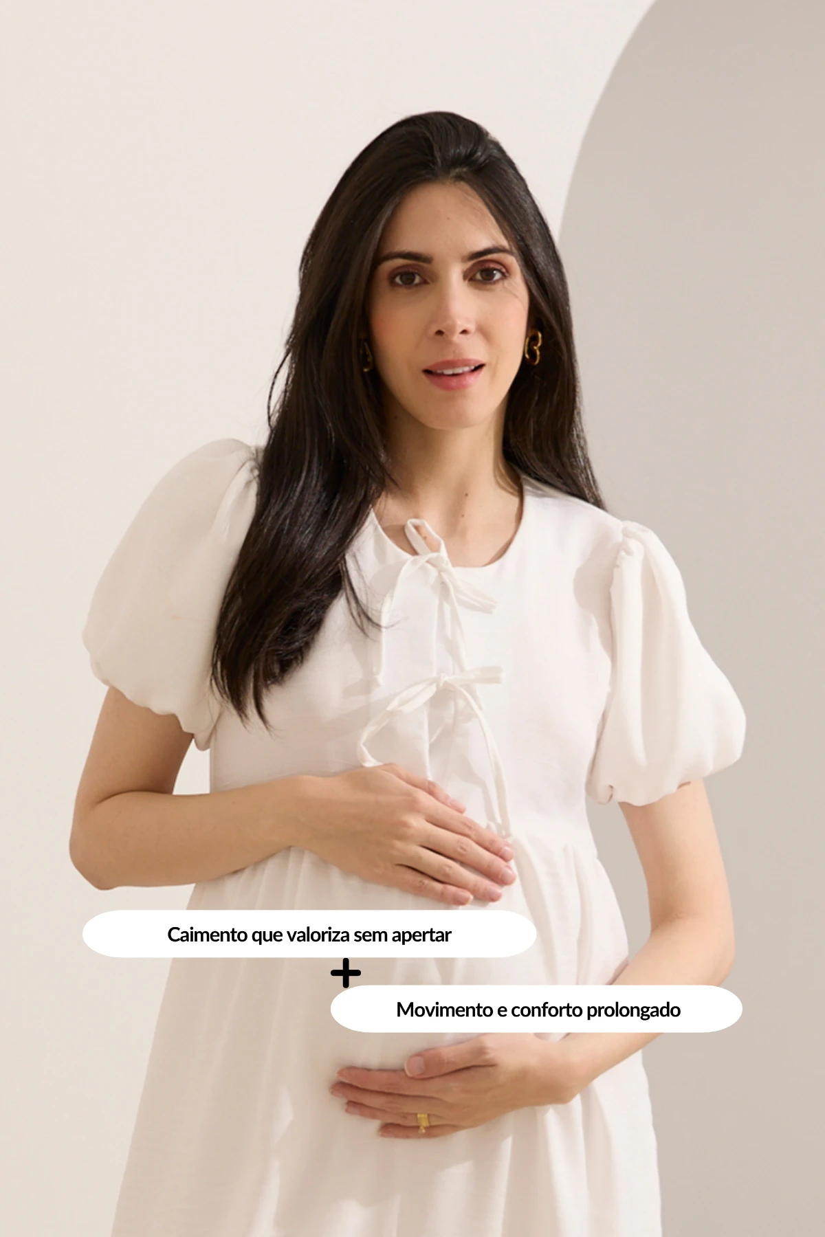 Peça versátil que transita do dia a dia a momentos especiais — ideal para ensaios, chás, passeios e compromissos onde é preciso aliar conforto e elegância em qualquer fase da maternidade.