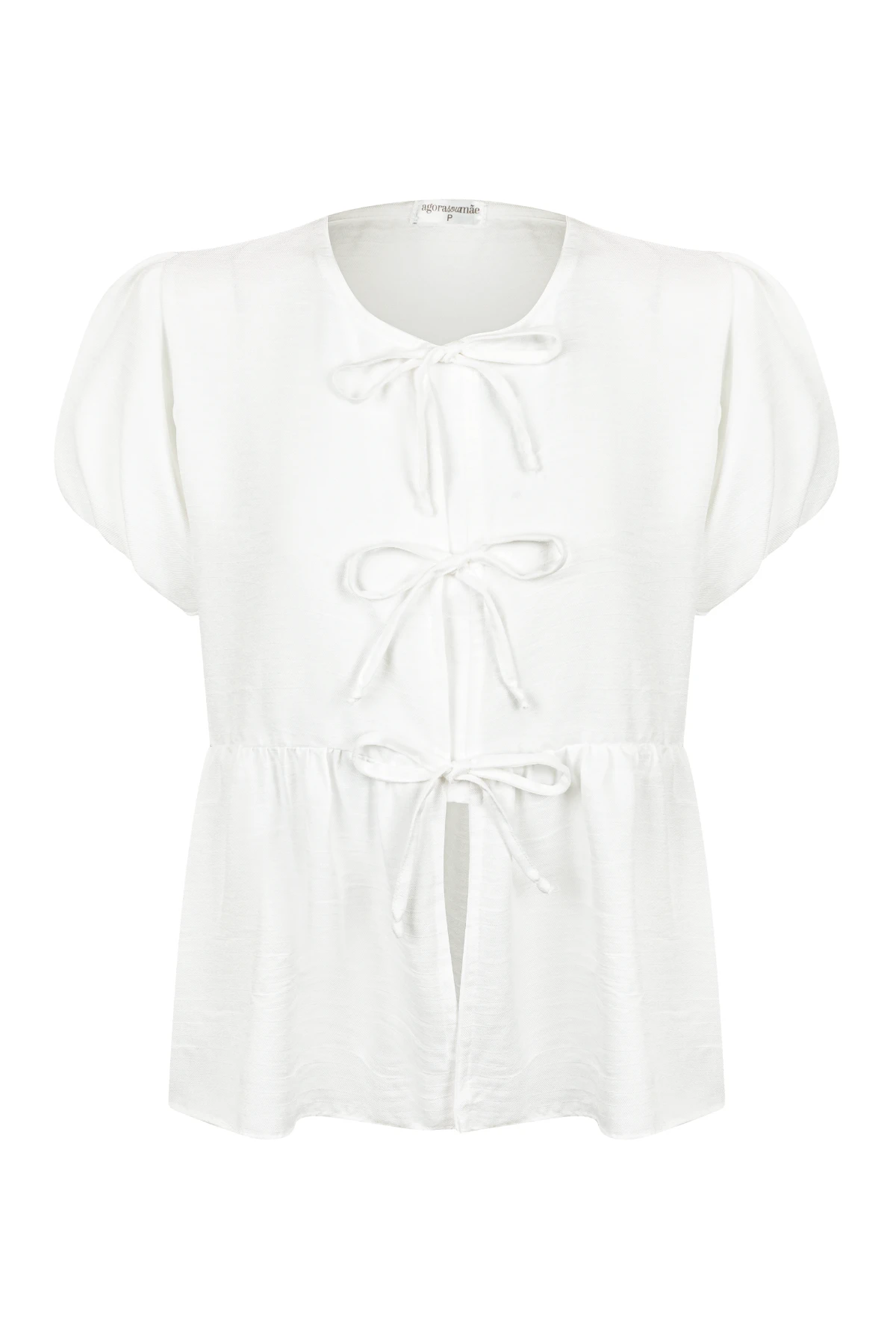 - Manga bufante e amarrações na frente, amamente com facilidade