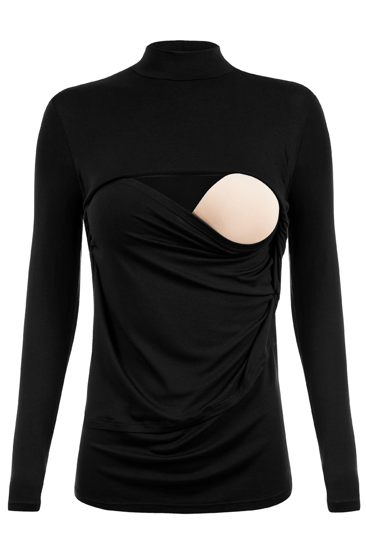 Amamentação discreta: recorte interno coberto por sobreposição — acesso prático sem exposição excessiva.