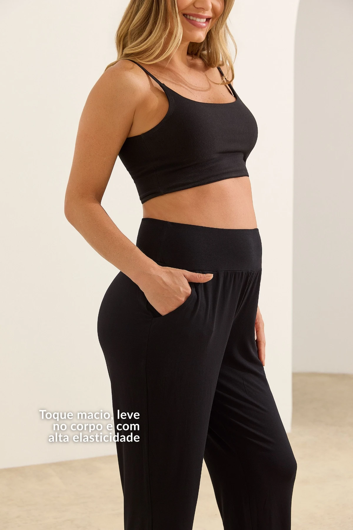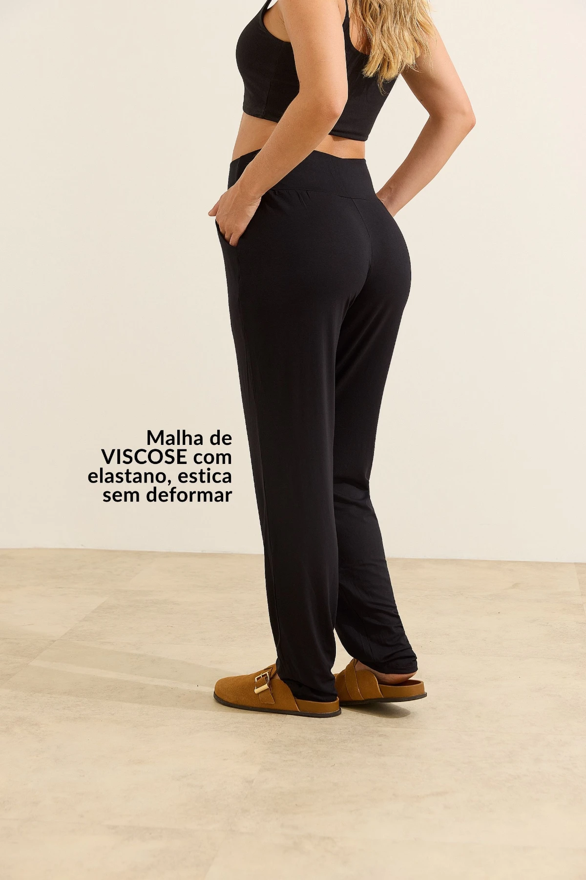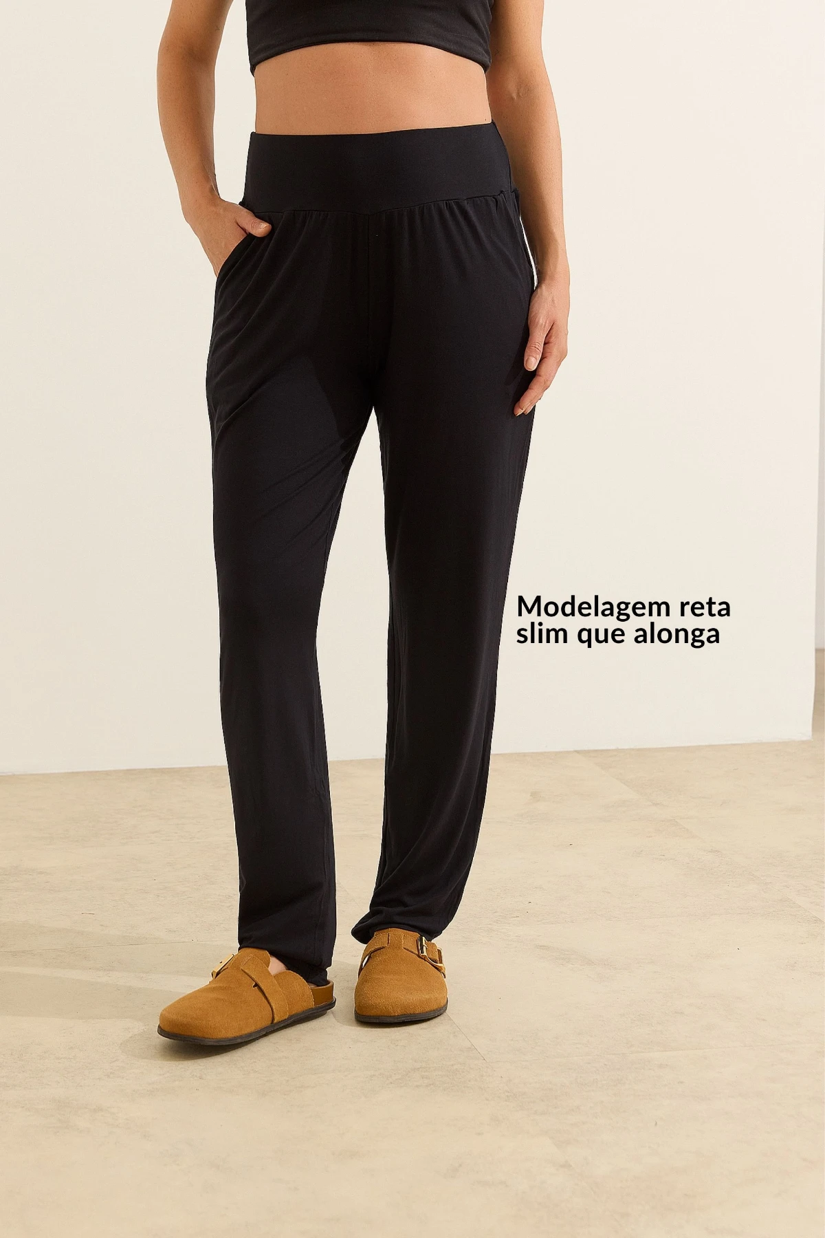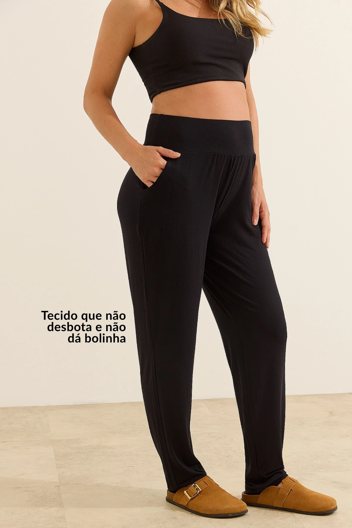 A Calça Slim Ultra Light possui modelagem reta slim que alonga, cós anatômico duplo que não aperta a barriga e malha de viscose com elastano, estica sem deformar e acompanha durante toda a gestação. Leve e macia, perfeita para o dia a dia.