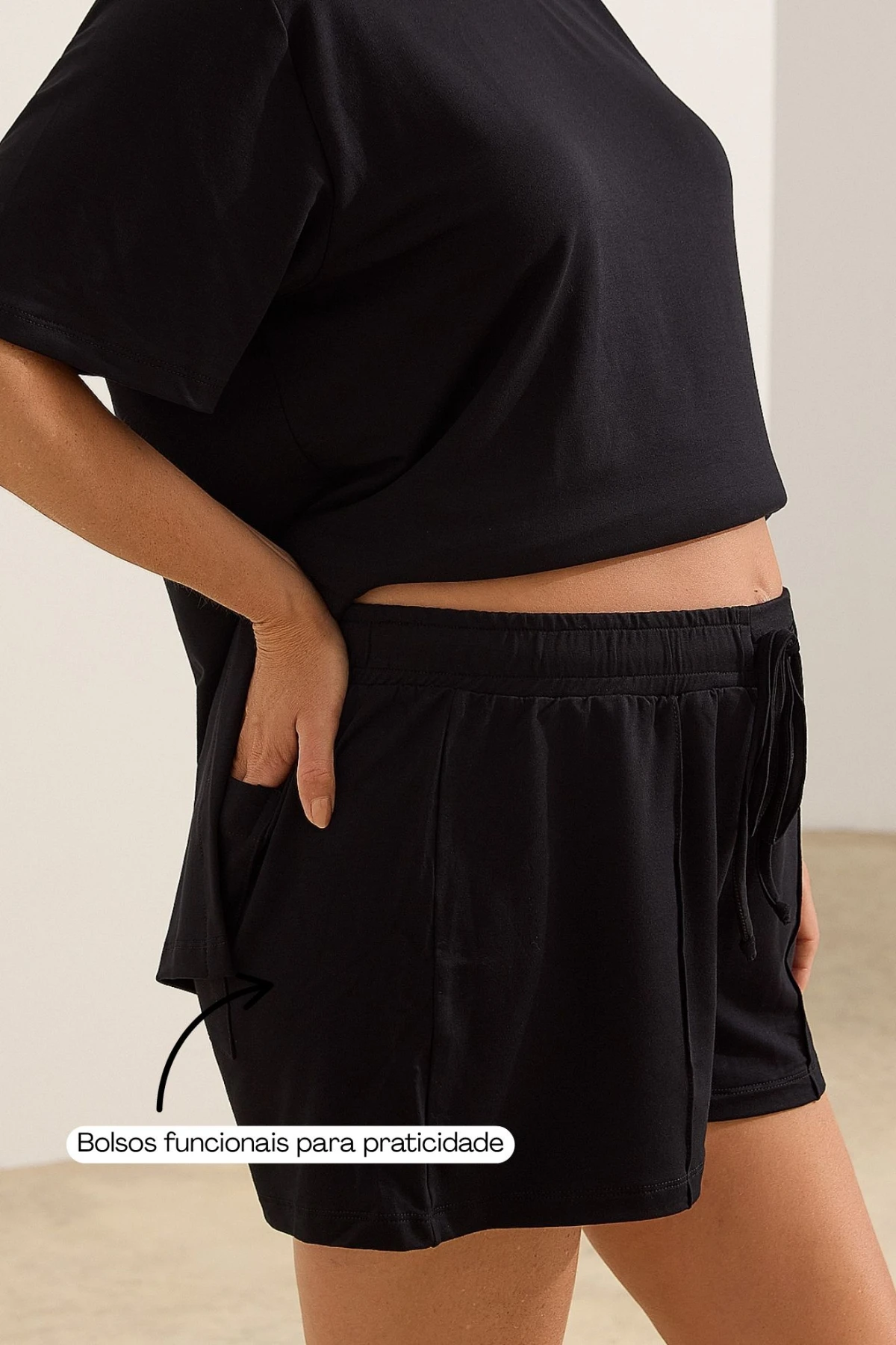Cós com elástico na cintura + cordão: ajuste flexível e confortável