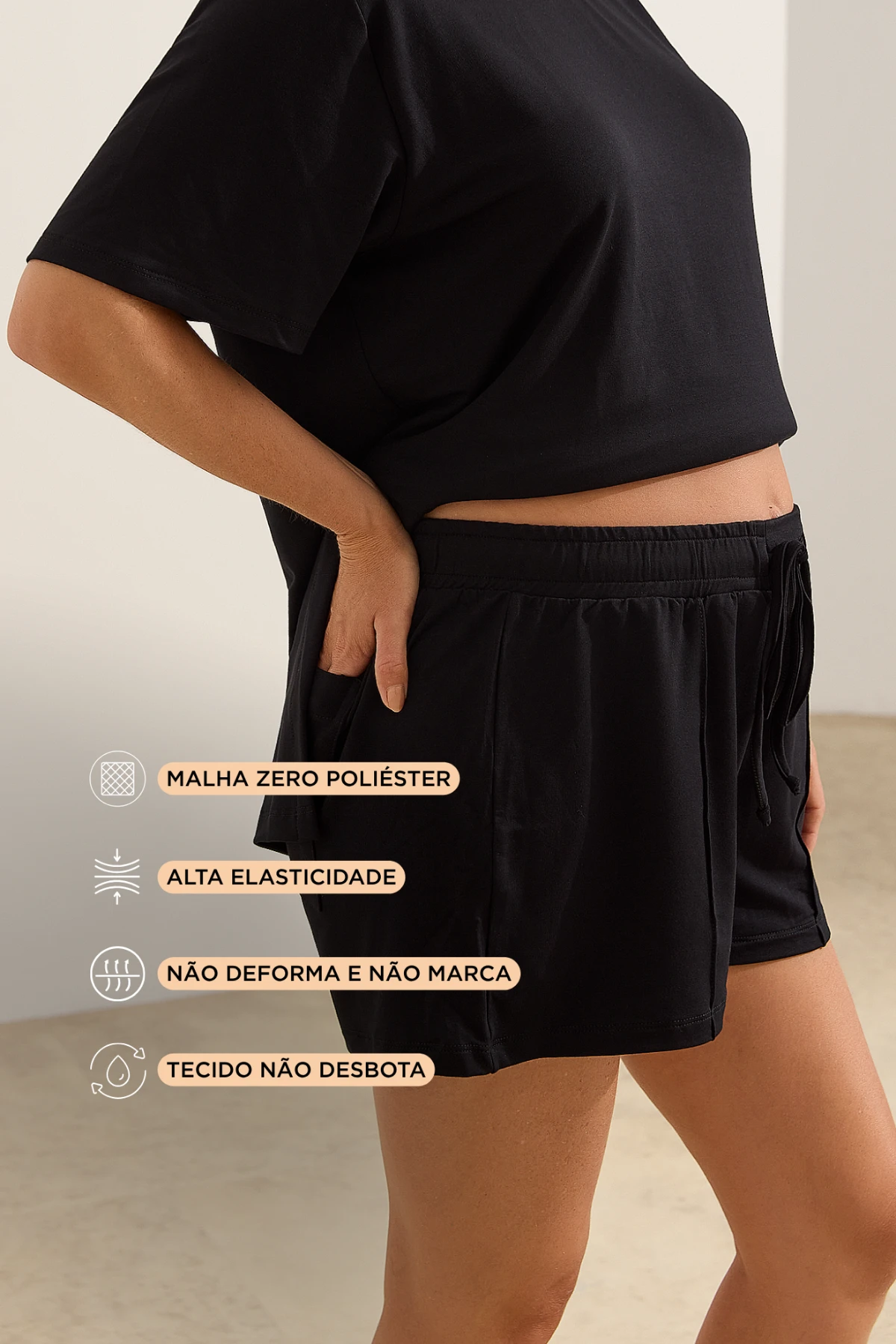 O Short Ultraconforto® Soltinho foi pensado para quem busca praticidade, conforto e funcionalidade em todos os momentos. Feito em malha exclusiva flexível de VISCOSE com elastano, possui ótima elasticidade, não deforma, ZERO POLIÉSTER e acompanha você em todas as fases.