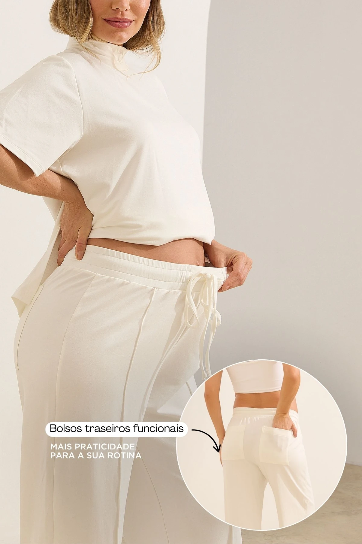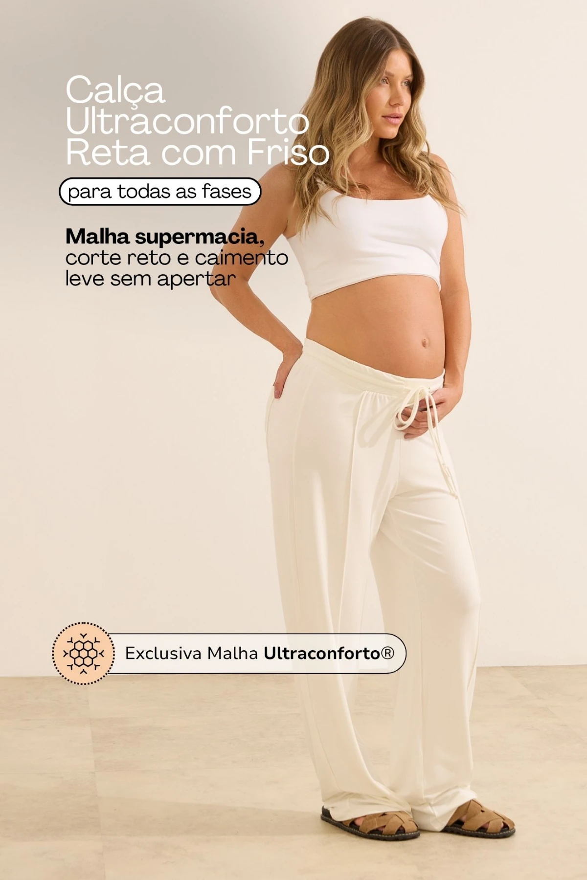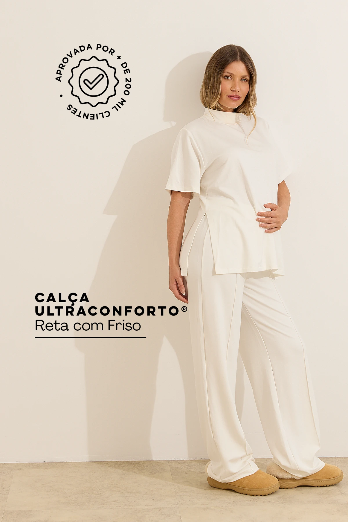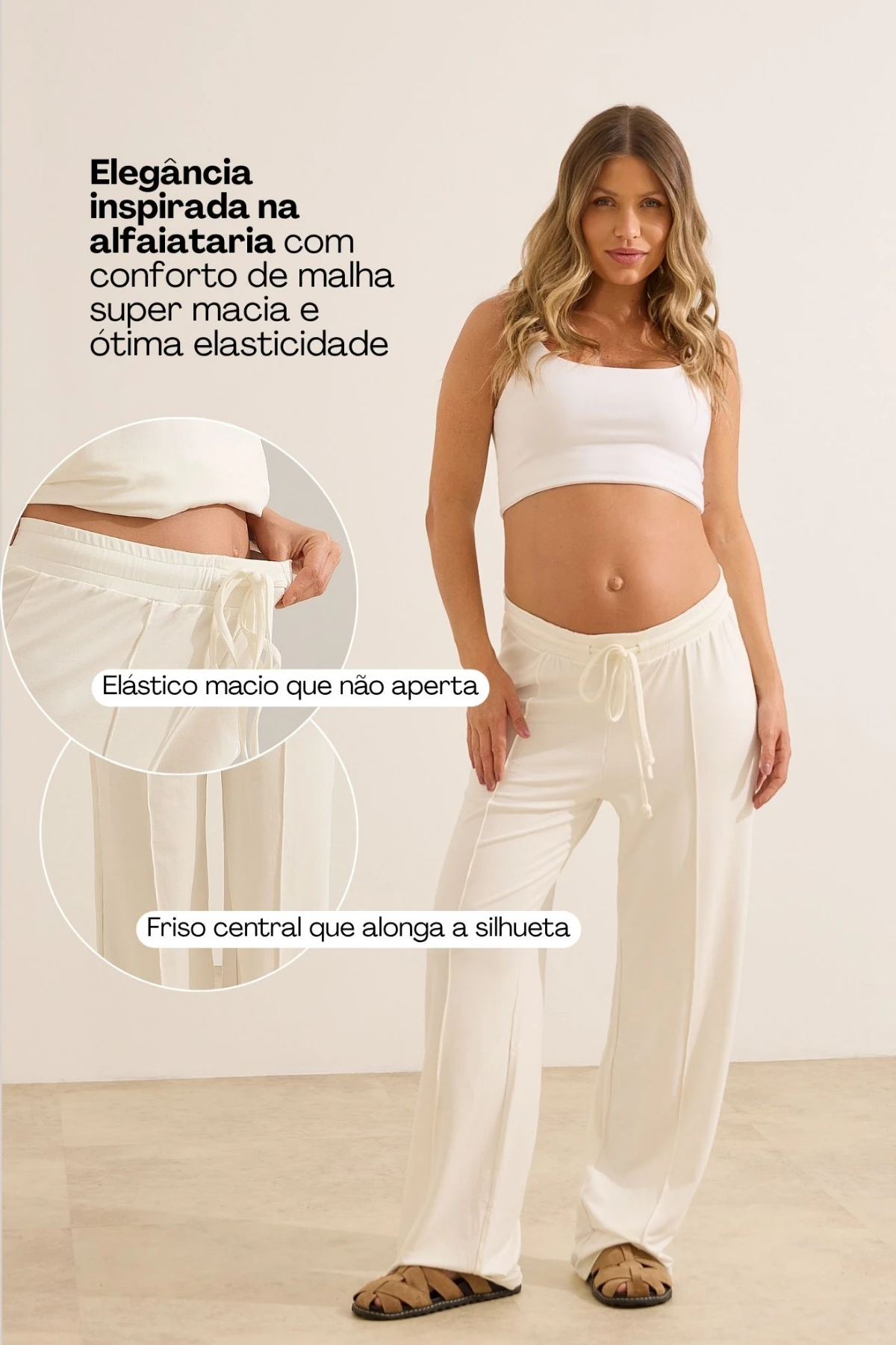 A calça está perfeita! Além do tecido macio, o cós vem com regulagem que não aperta a barriga, o corte reto deixa ela até casual e o friso na frente deixou ainda amais Chic, amei!!