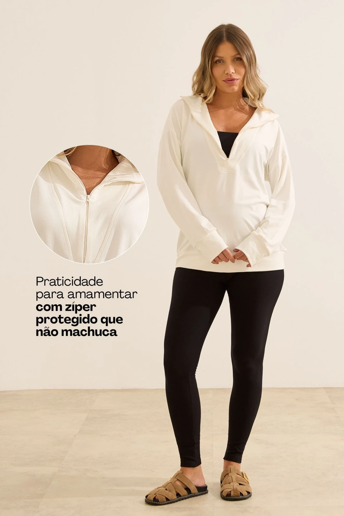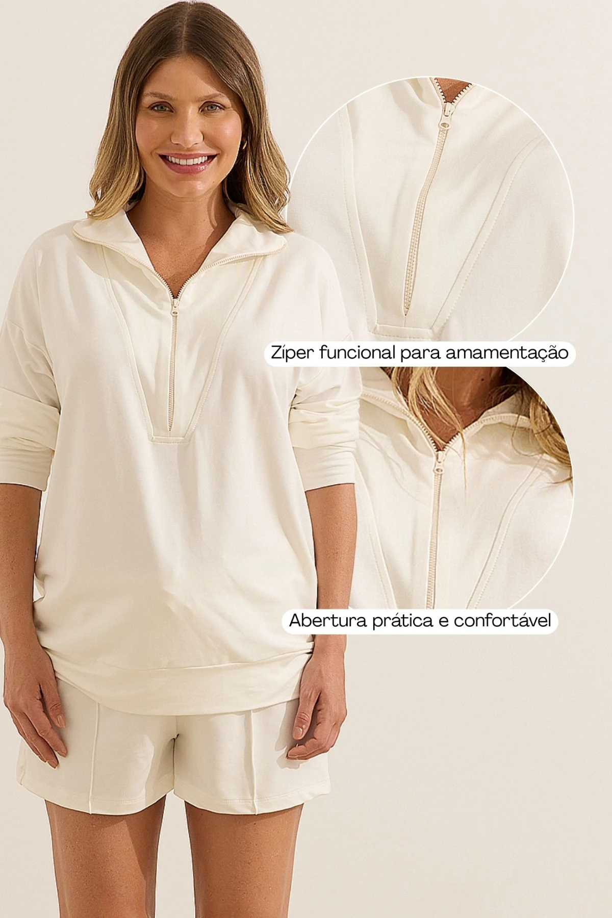 BLUSA MOLETINHO ULTRACONFORTO® COM ZIPER GESTANTE E AMAMENTAÇÃO