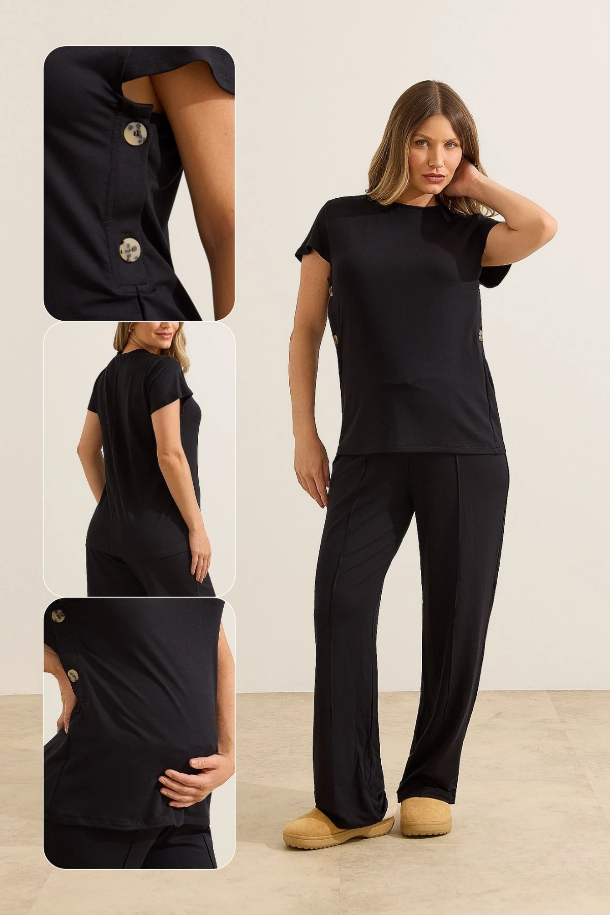 A Blusa com Botões Laterais, produzida em malha exclusiva Ultraconforto® (zero poliéster) foi pensada para facilitar a amamentação com praticidade e discrição, sem abrir mão do conforto no dia a dia. Basta abrir o botão na da lateral e amamentar.