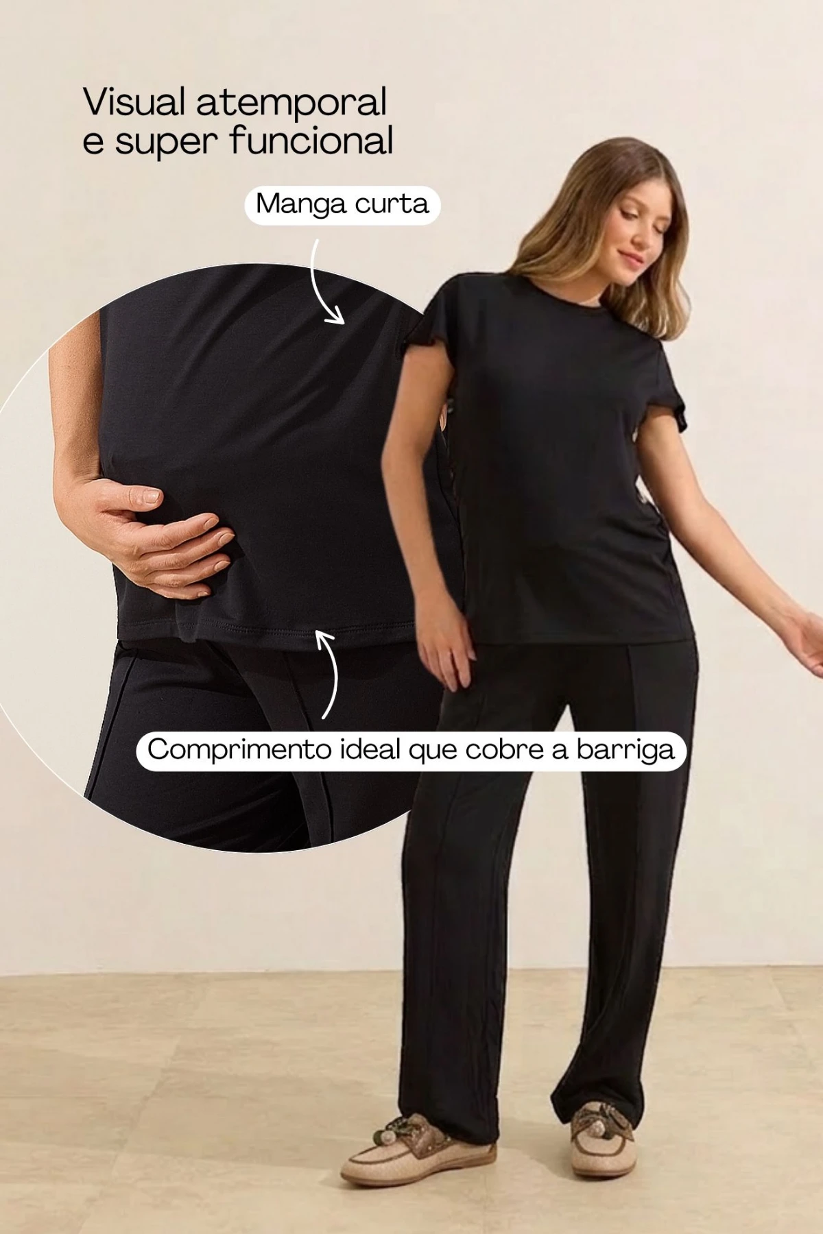 Comprimento ideal: acompanha a gestação sem deixar a barriga à mostra