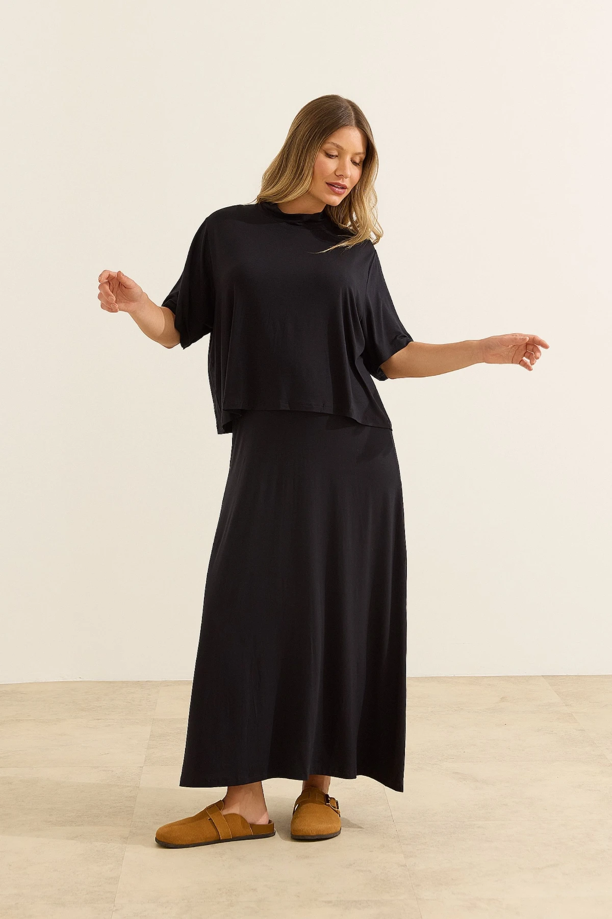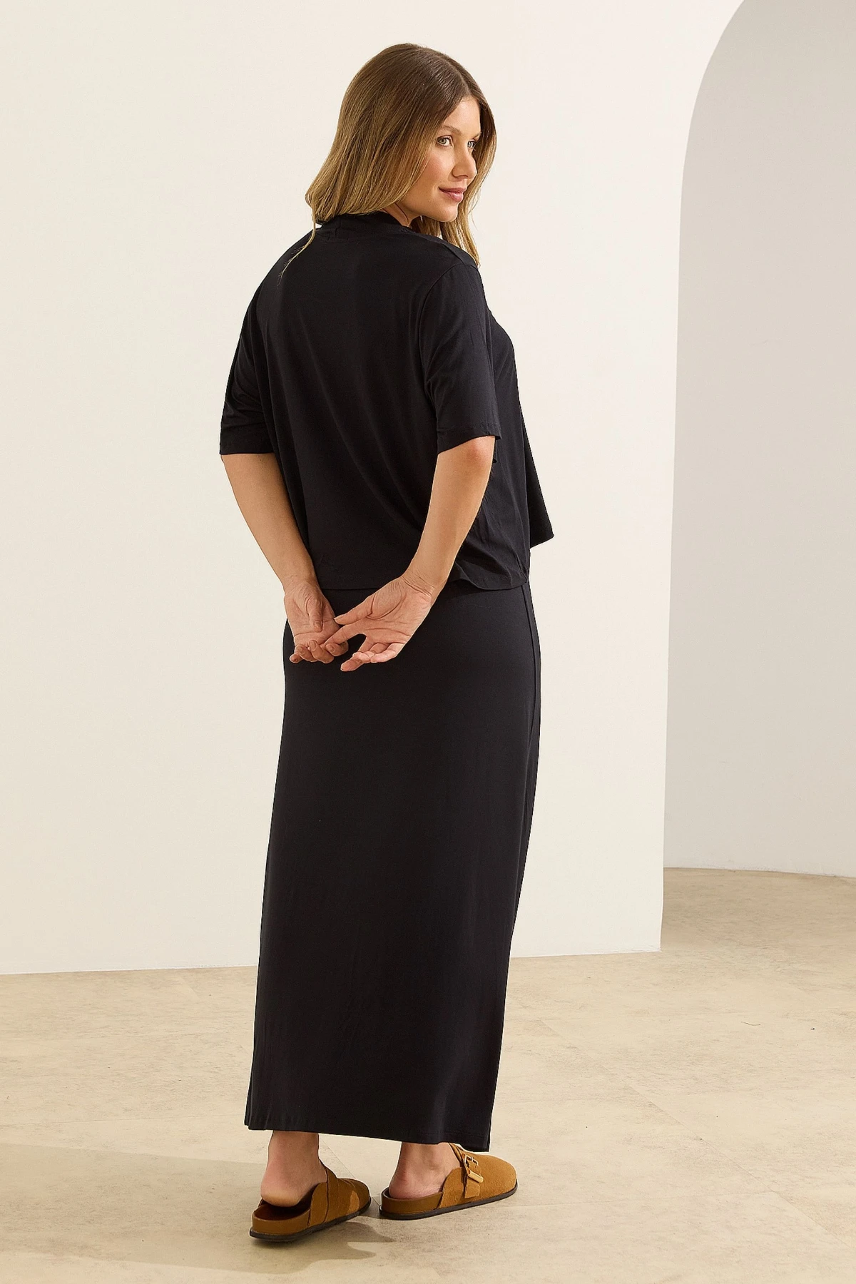 O Conjunto Vestido Longo com Cropped une funcionalidade e versatilidade em uma proposta prática para o dia a dia. Confeccionado em viscose com elastano, possui toque extremamente macio, alta elasticidade e caimento leve, adaptando-se ao corpo com conforto.