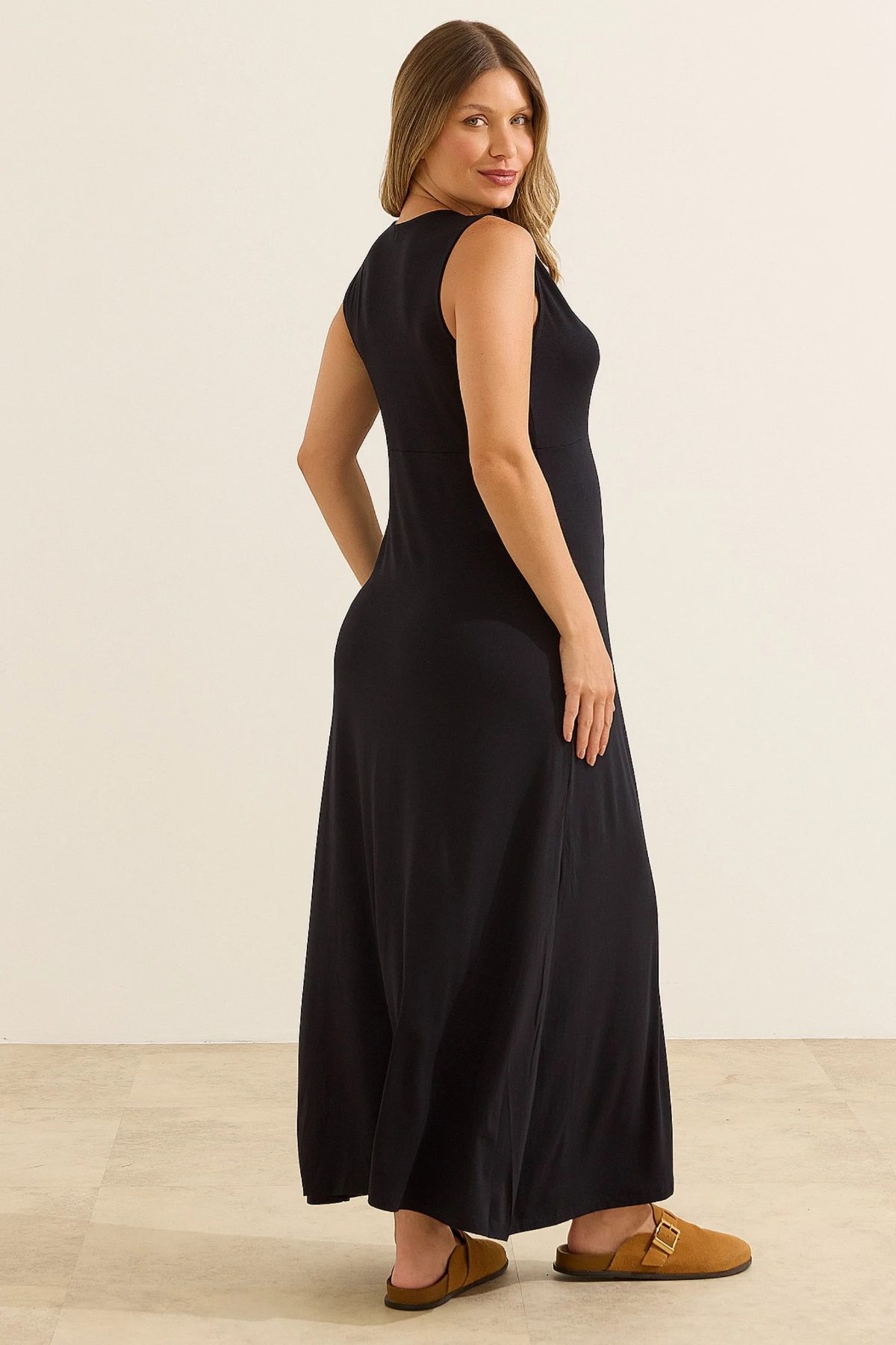 Vestido estilo regata com decote em V, fácil de amamentar
