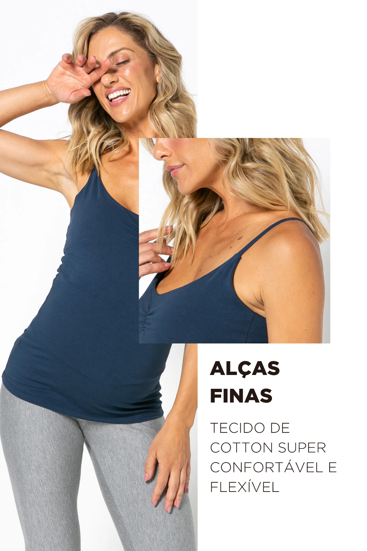 Confeccionada em cotton macio e elástico, adapta-se ao corpo em transformação, sustenta o busto sem apertar e dispensa o uso de sutiã.