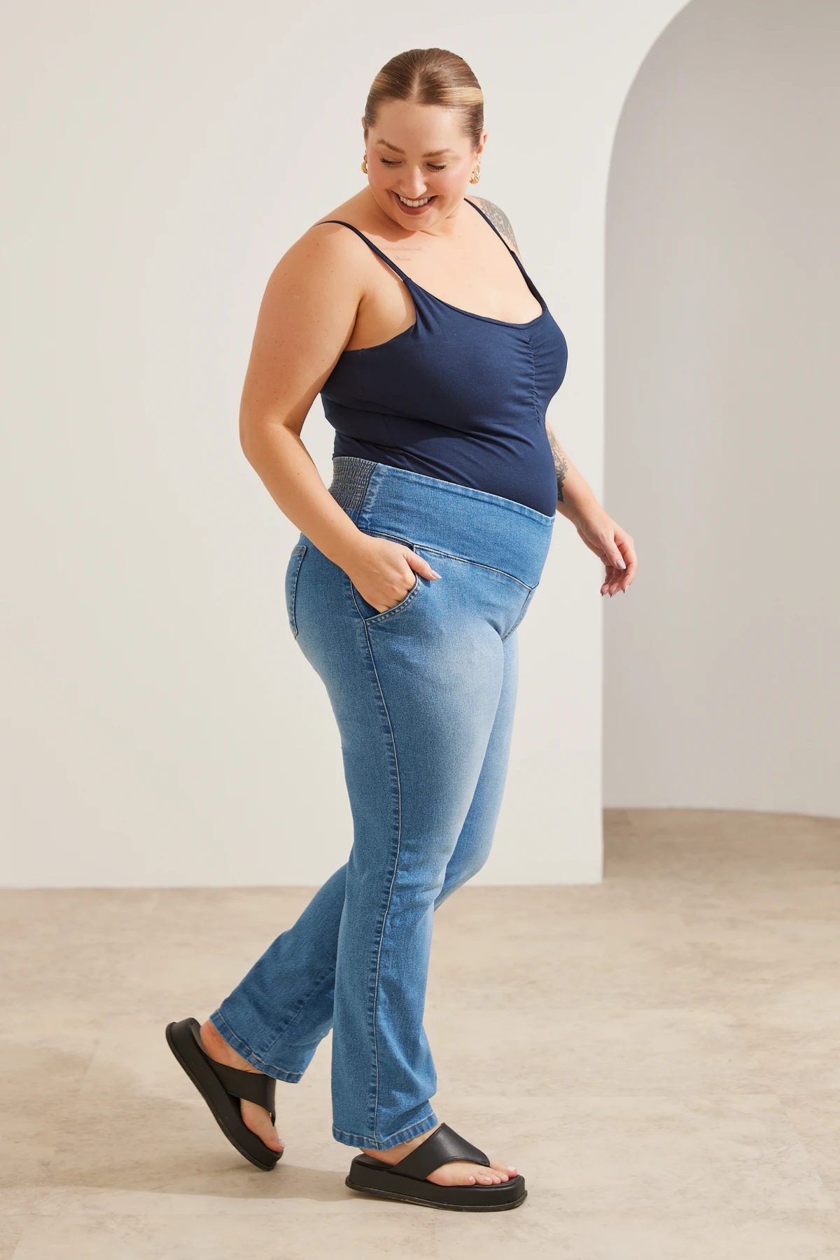 Tecido em cotton macio e flexível: acompanha o crescimento da barriga sem apertar.