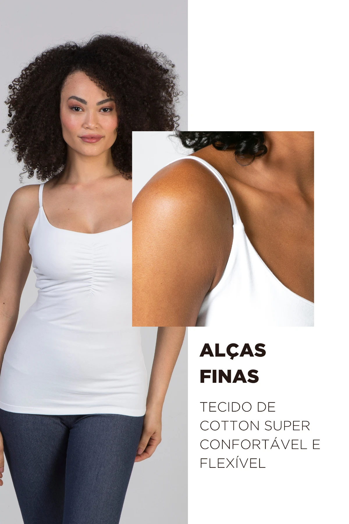 Confeccionada em cotton macio e elástico, adapta-se ao corpo em transformação, sustenta o busto sem apertar e dispensa o uso de sutiã.