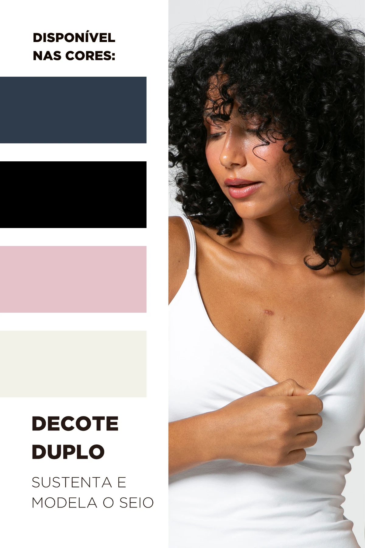 O decote duplo modela delicadamente o busto e garante sustentação ideal, permitindo usar com ou sem sutiã — perfeito para os dias em que o corpo pede leveza. Para amamentar, basta puxar o decote para baixo, de forma prática e discreta, facilitando o momento com o bebê em qualquer lugar.