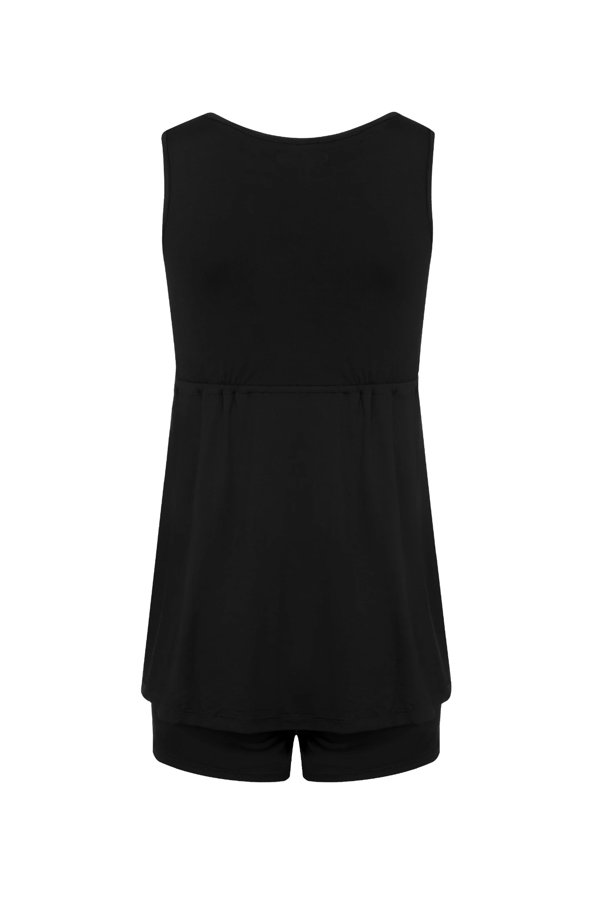 Conjunto com regata de decote transpassado e short; tecido super maleável, soltinho e confortável.