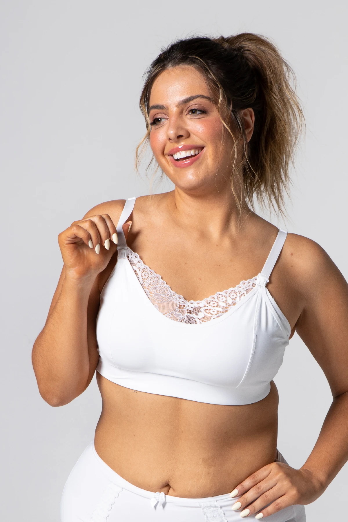 O Sutiã Gestante Renda e Decote Fechado une conforto, sustentação e delicadeza em uma peça essencial para a fase da amamentação.