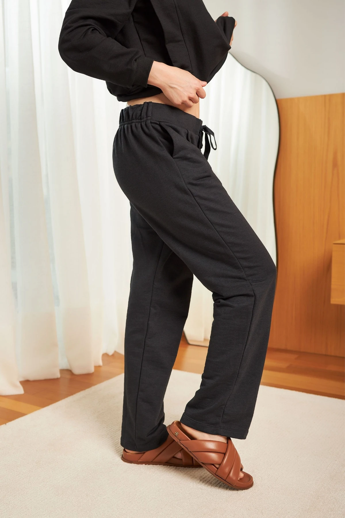 A Calça Gestante Moletom Comfy Reta foi pensada para resolver isso: moletom super confortável, modelagem reta e soltinha, cós com elástico e amarras que acompanham a barriga e bolsos laterais para praticidade.