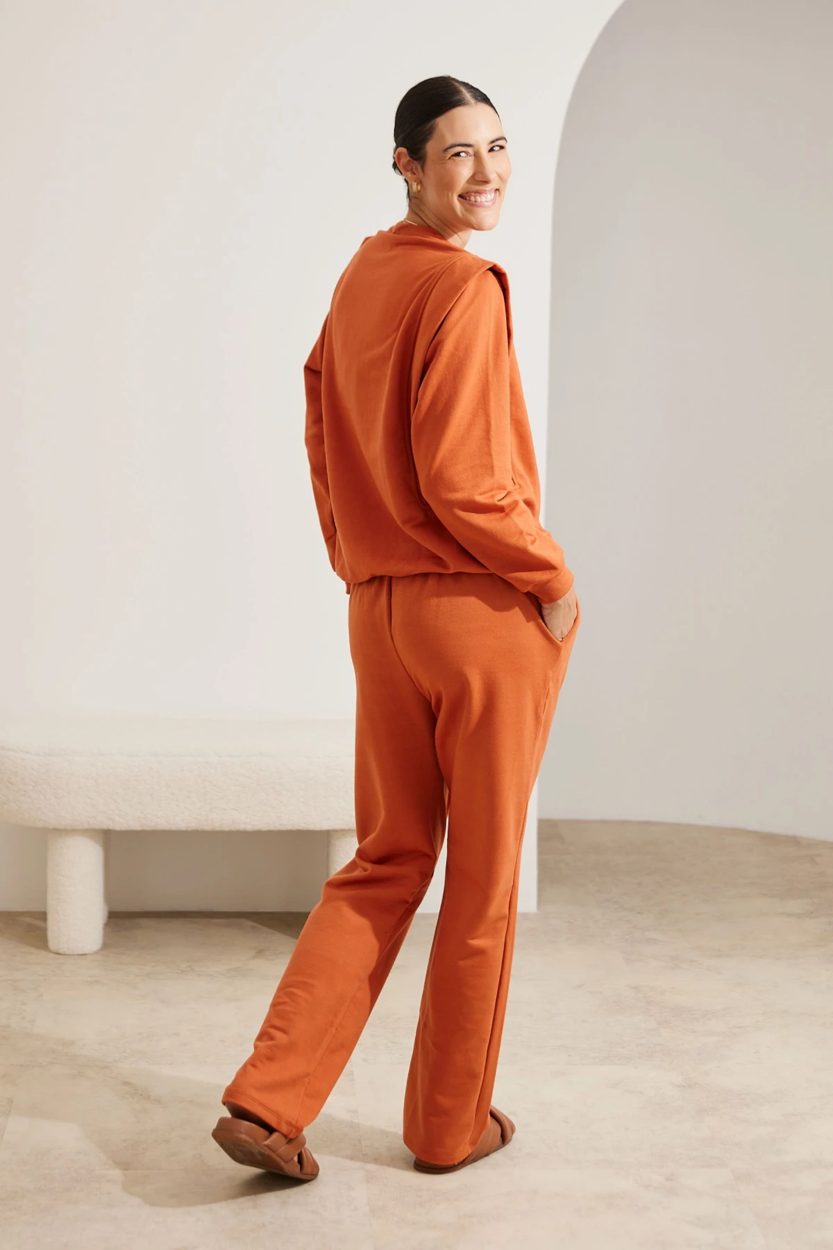 Conforto prolongado: tecido moletom macio que aquece sem perder leveza.