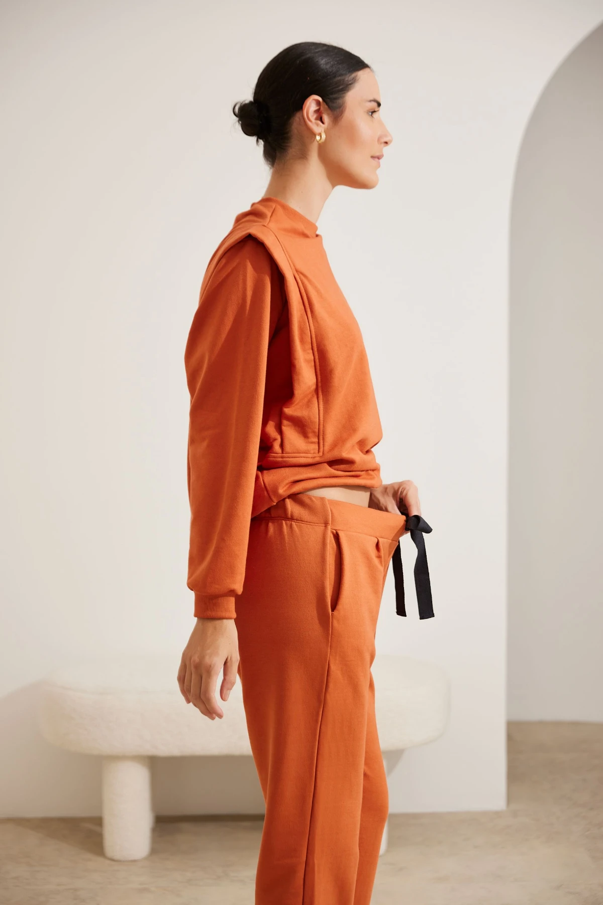 Pensando nisso, a calça aposta no conforto sem abrir mão da praticidade: a modelagem reta e soltinha dá liberdade de movimento, enquanto o cós flexível com elástico e amarração permite regular o ajuste conforme a barriga cresce. Os bolsos laterais adicionam utilidade, tornando a peça ideal para a rotina da maternidade.