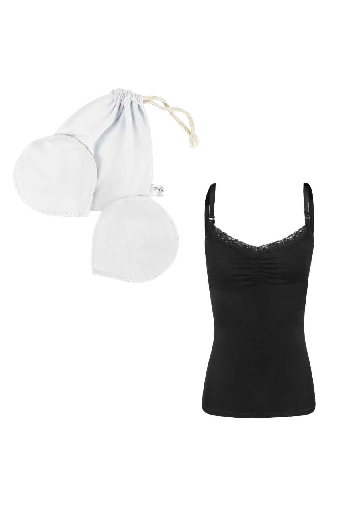 KIT AMAMENTAÇÃO REGATA 2 EM 1 E ABSORVENTE DE SEIOS EM ALGODÃO LAVÁVEL