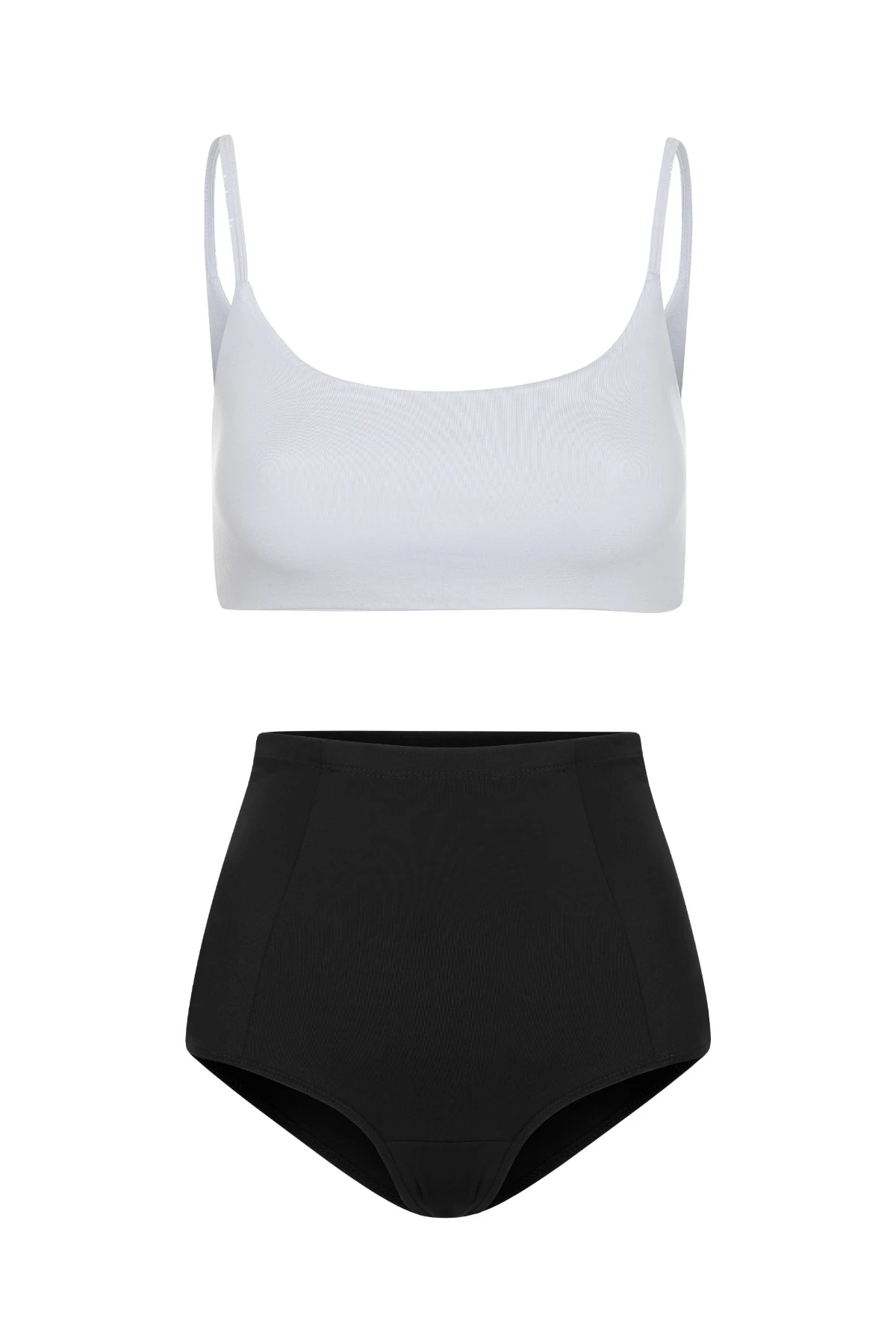 Calcinha de média compressão pós-parto com cintura alta sem elástico na cintura e Top confeccionado em malha de algodão.