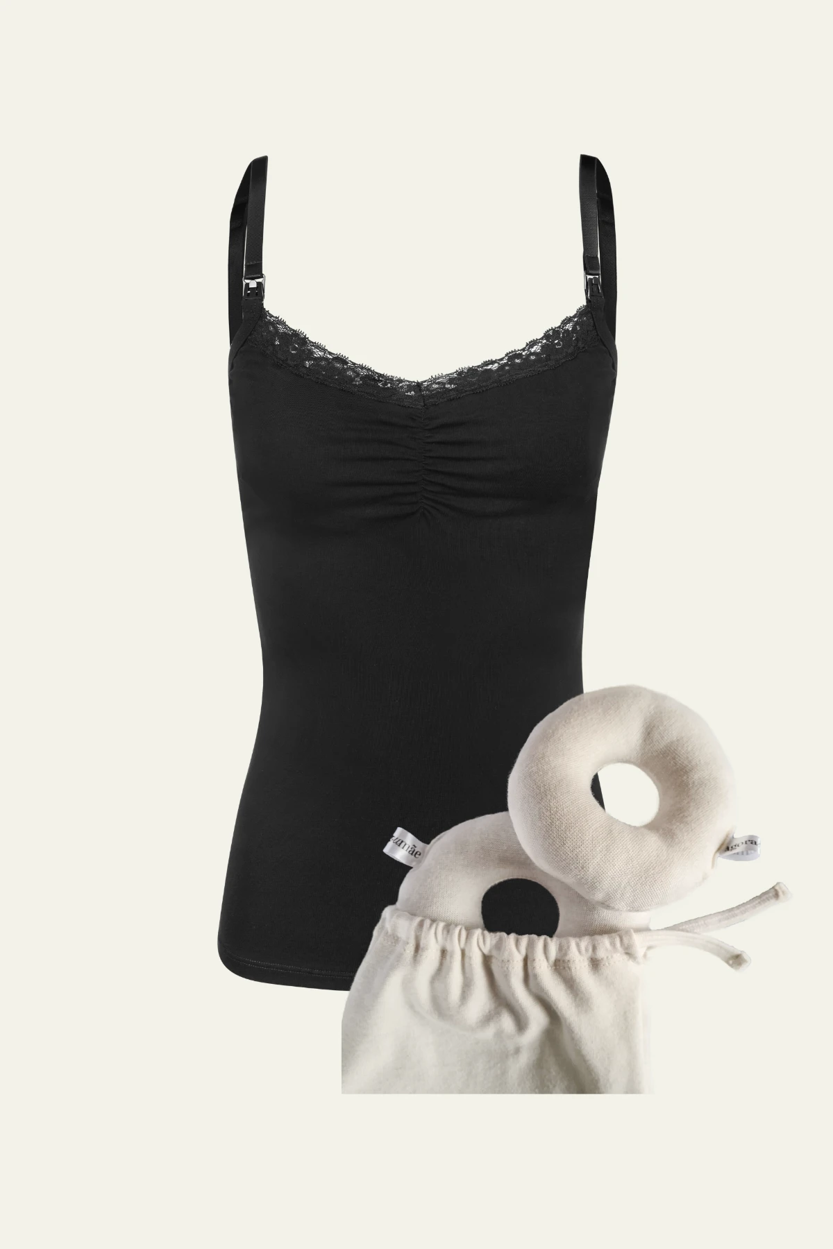 A Regata 2 em 1 é ideal da gravidez a amamentação, super confortável, com alça destacável e busto duplo sem precisar usar sutiã. Já as Rosquinhas de algodão orgânico servem para auxiliar a amamentação protegendo os mamilos de sensibilidade e rachaduras.