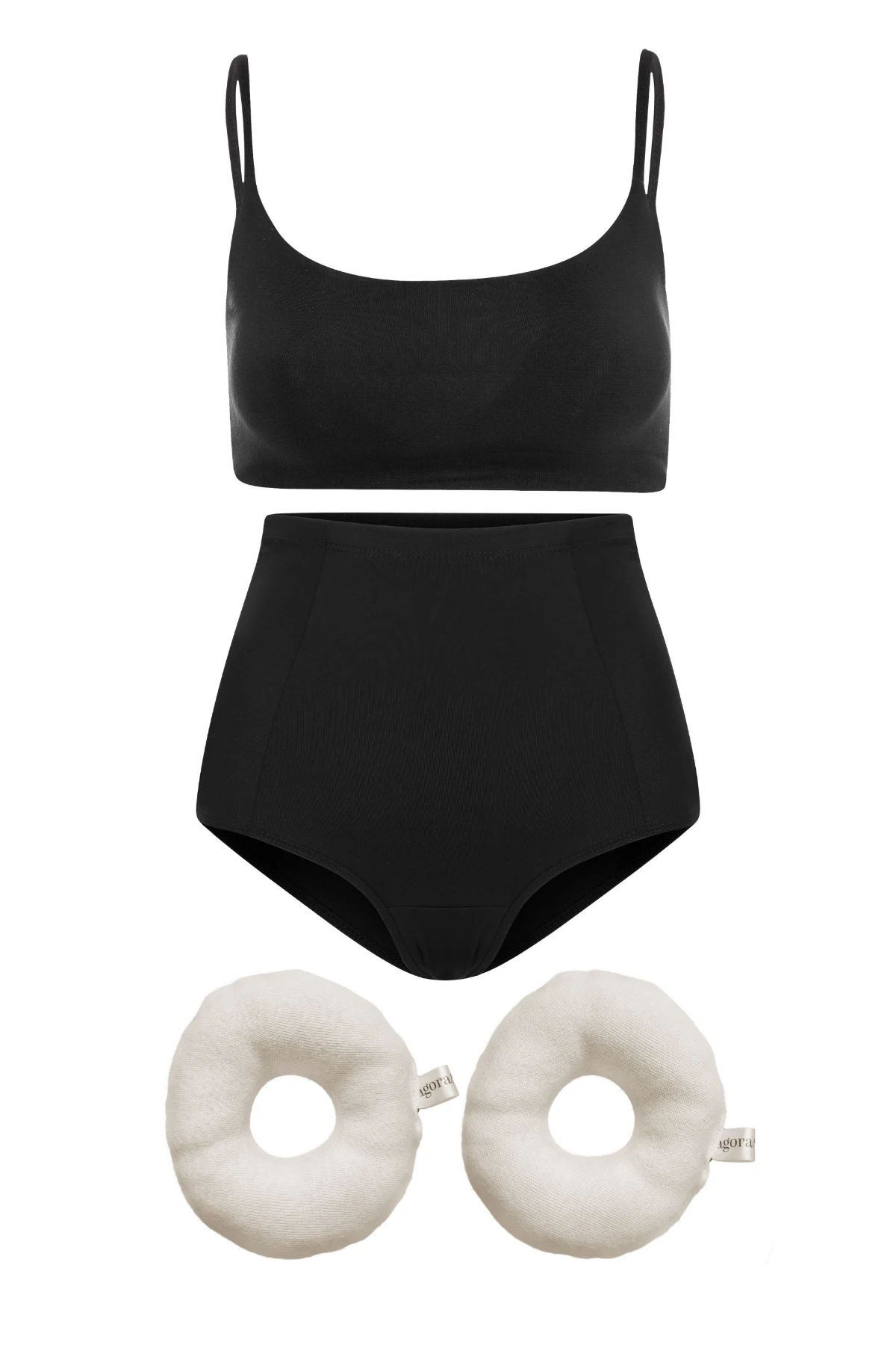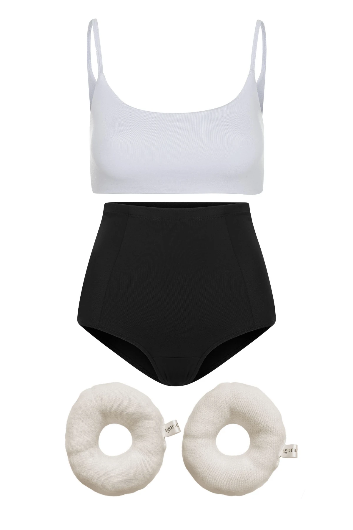 Conjunto essencial para a maternidade: top em algodão com sustentação e conforto para todas as fases, calcinha de média compressão com cintura alta e sem elástico, e rosquinhas de algodão orgânico que protegem os mamilos durante a amamentação. Funcionalidade, cuidado e bem-estar em cada detalhe.