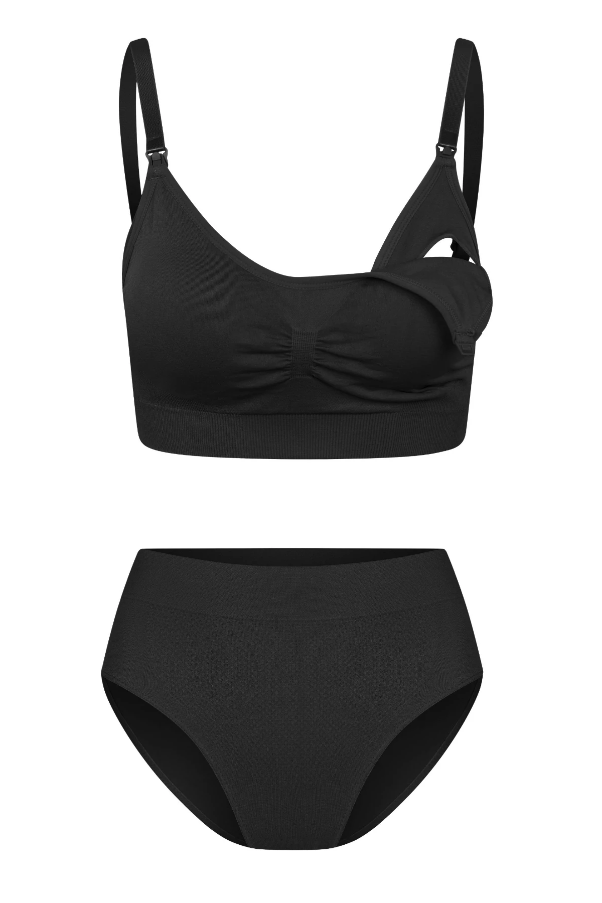Kit composto por 1 Sutiã Amamentação Luna com Bojo Removível e 1 Calcinha Alta Gestante e Pós-Parto Sem Costura.
