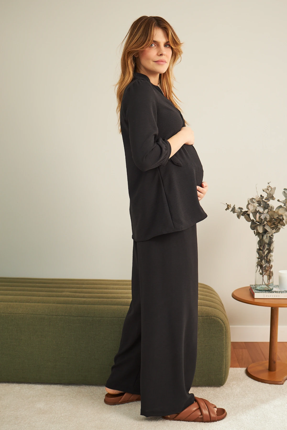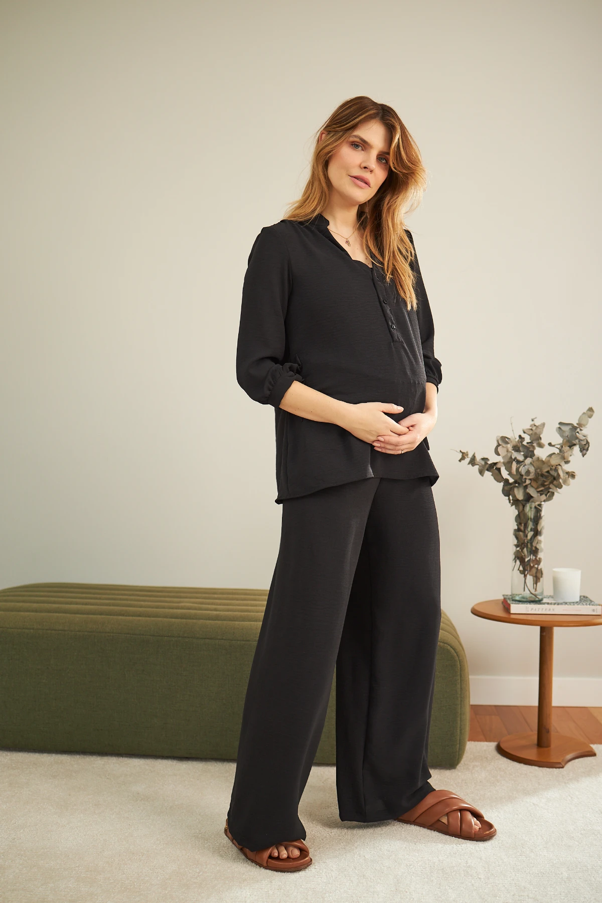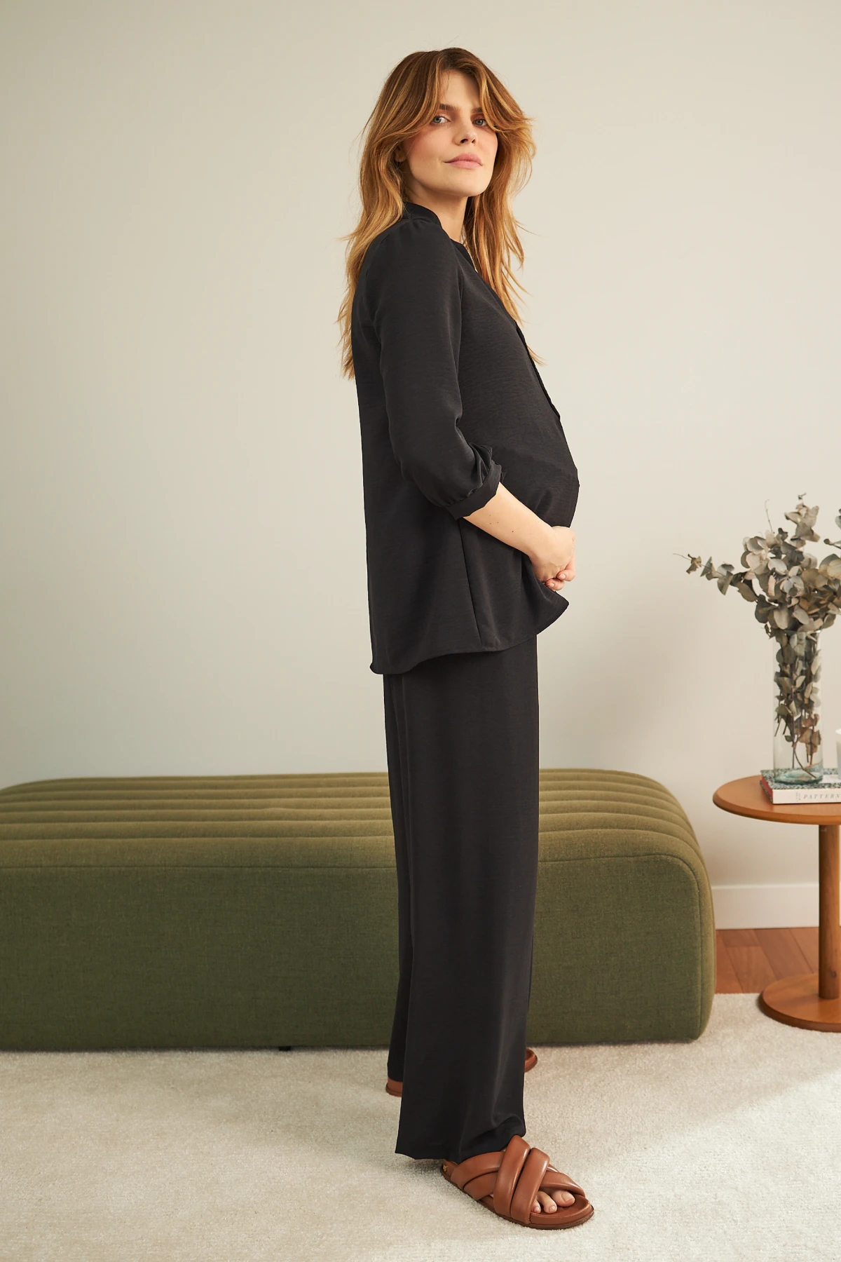 Blusa com modelagem ampla e fendas laterais, mangas ¾ e botões que permitem amamentar com facilidade. Combine com nossa Calça Gestante e Pós-Parto Soltinha com Lástex e crie um conjunto monocromático perfeito para usar em diferentes ocasiões do dia a dia.