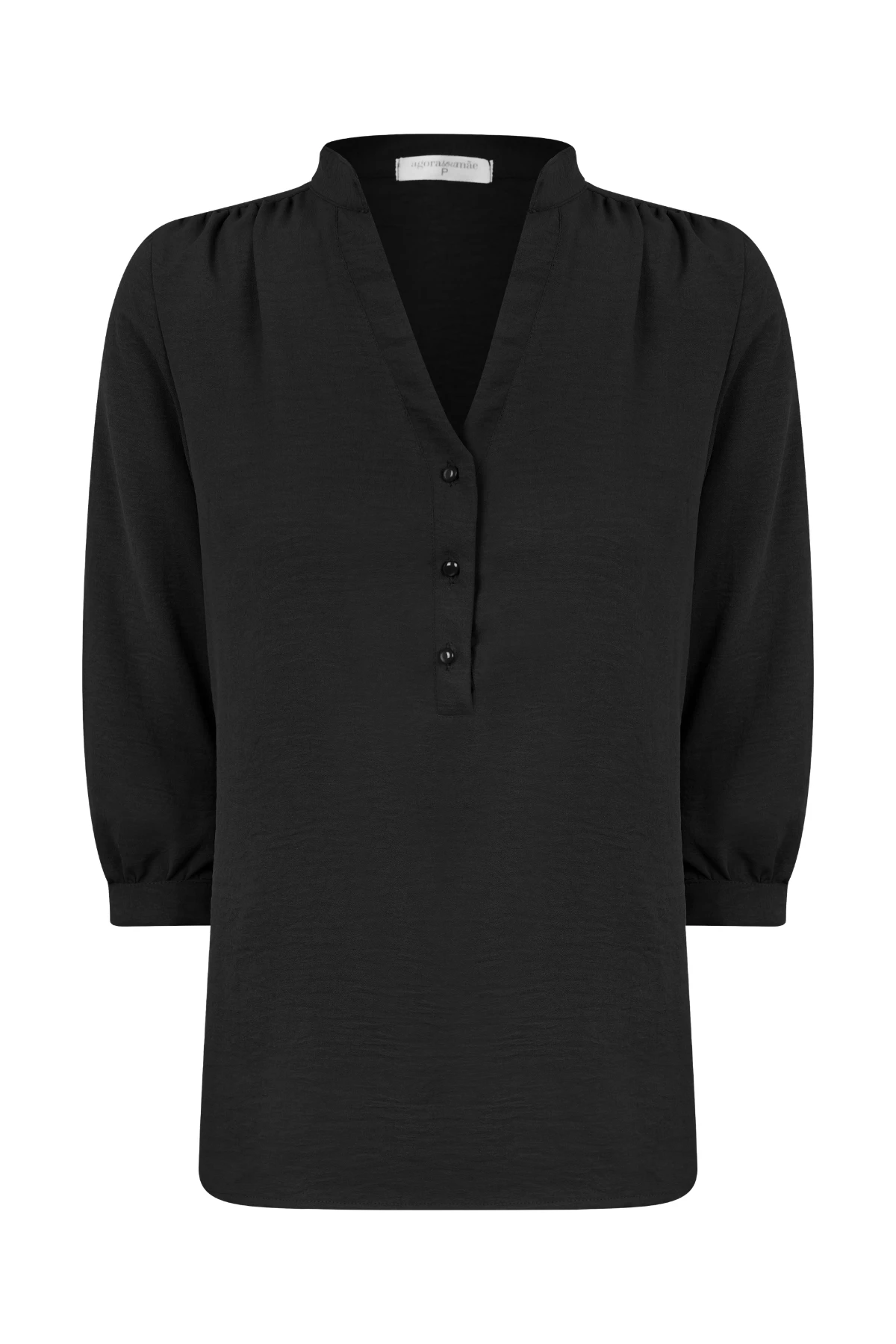 Blusa solta em tecido plano e abertura frontal com botões para amamentar com praticidade. Mangas ¾ com amarração. A modelagem soltinha com fendas laterais também comporta o crescimento da barriga durante a gestação. Peça perfeita para todas as fases da maternidade, da gravidez ao pós-parto!